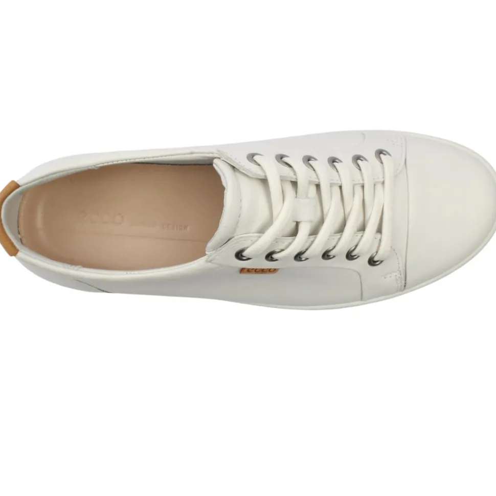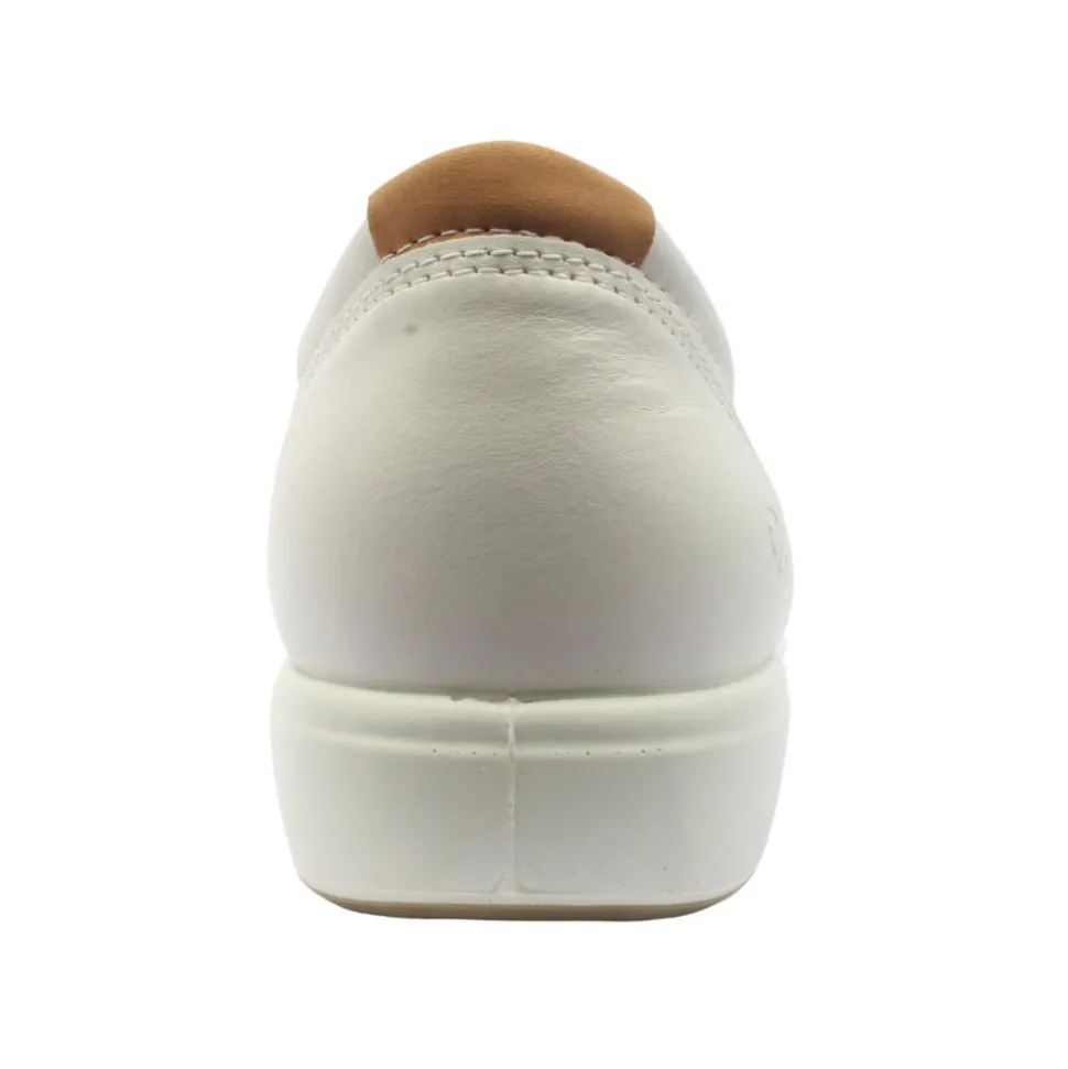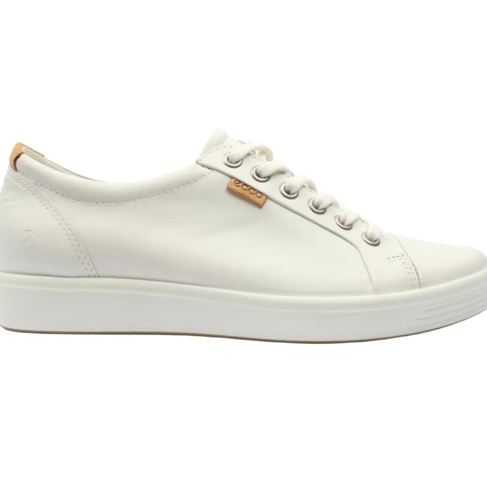 Ecco shoes present the Soft 7 ladies shoes. These ladies ecco shoes have a lovely smooth white leather upper with contrasting tan heel tab.This style has a removable insole which allows for the option of extra width. The ECCO FLUIDFORM technology provides soft, flexible and fluid movement for all day comfort.