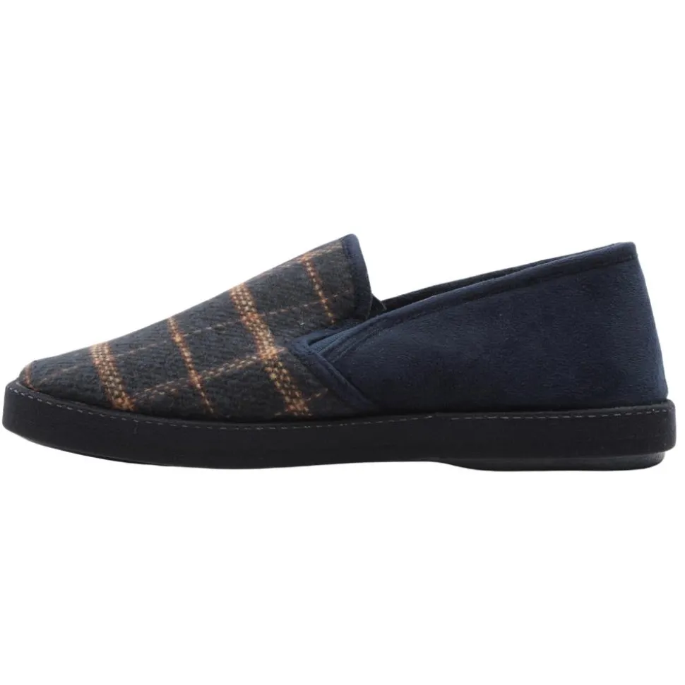 Mens slippers from Kylebay. This slipper has a soft navy upper.They are a slip on style with elastic gussts for easy on/off.