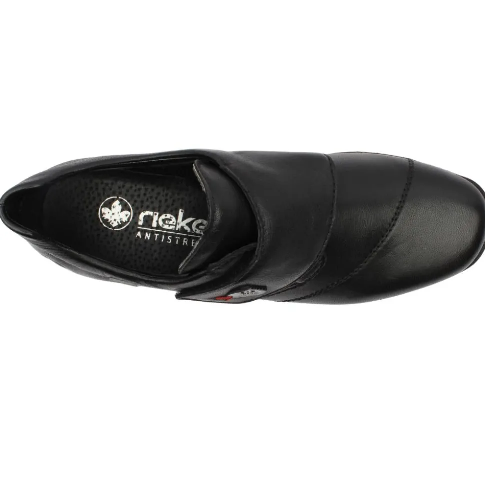 Casual ladies shoes f rom Rieker shoes. The velcro strap closure makes them easy to open and close. Designed to withstand the elements, these shoes boast Rieker Tex lining,ensuring your feet stay warm and dry even during light wet weather conditions. Experience the ultimate in comfort with the Rieker Antistress Leather Insole.