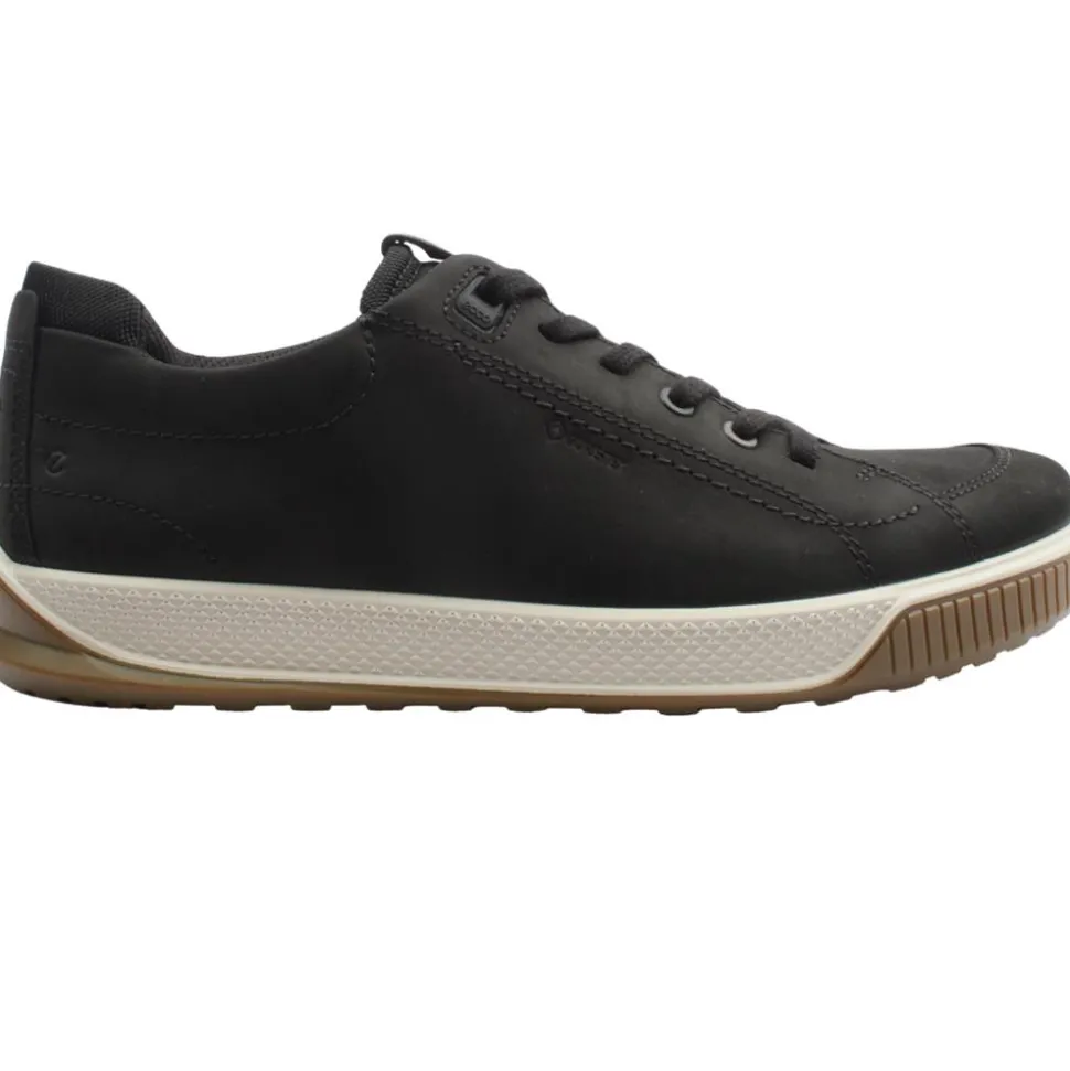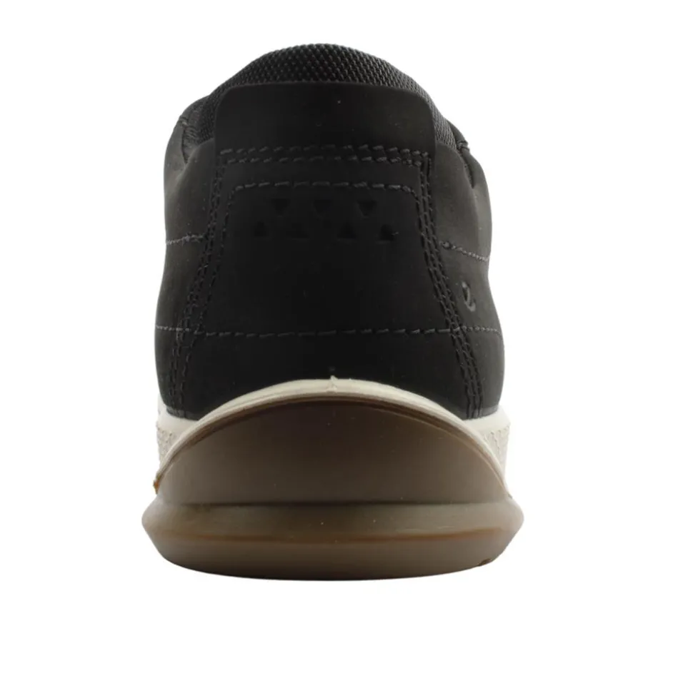 Mens waterproof shoes from Ecco shoes is perfect for all day casual wear. The upper is black leather with a subtle oiled finish with a textile trim around the heel and on the tongue. The padded leather insole is removable. Durable & lightweight, the outsole provides flexibility and excellent grip. Goretex lining provides a waterproof barrier.