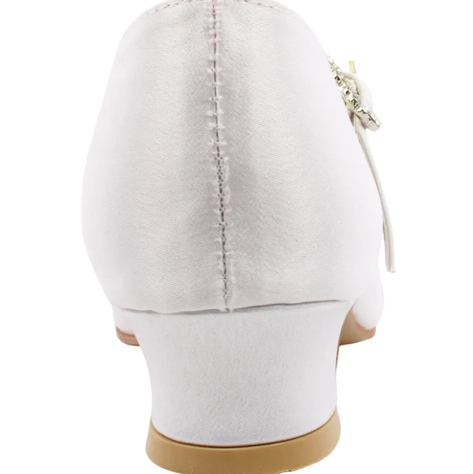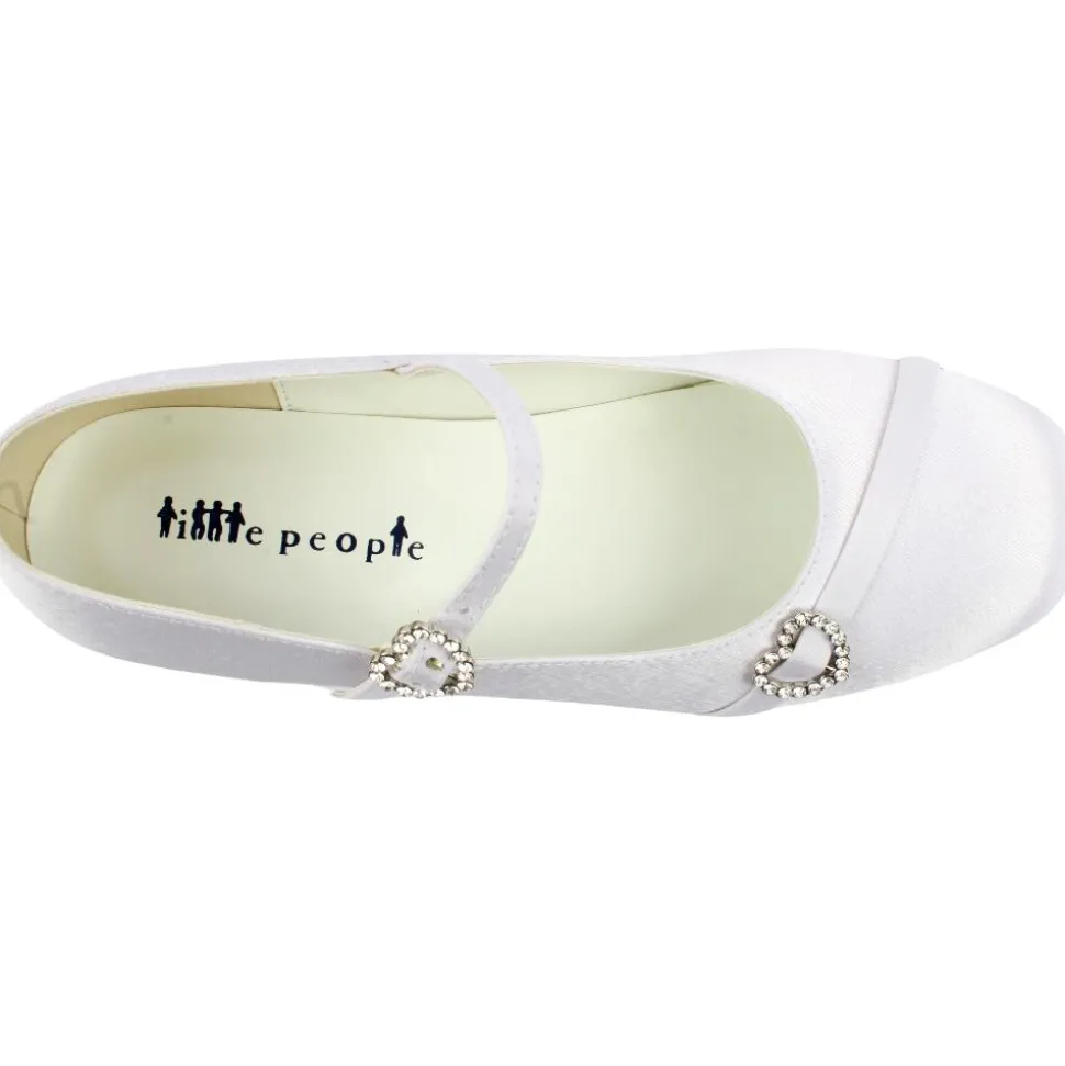 Girls Coummunion Shoes from Little People. White Satin Upper with two heart shaped buckles.