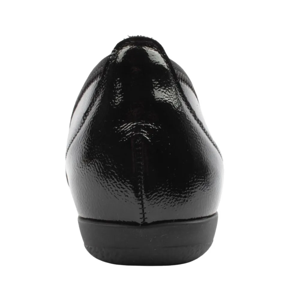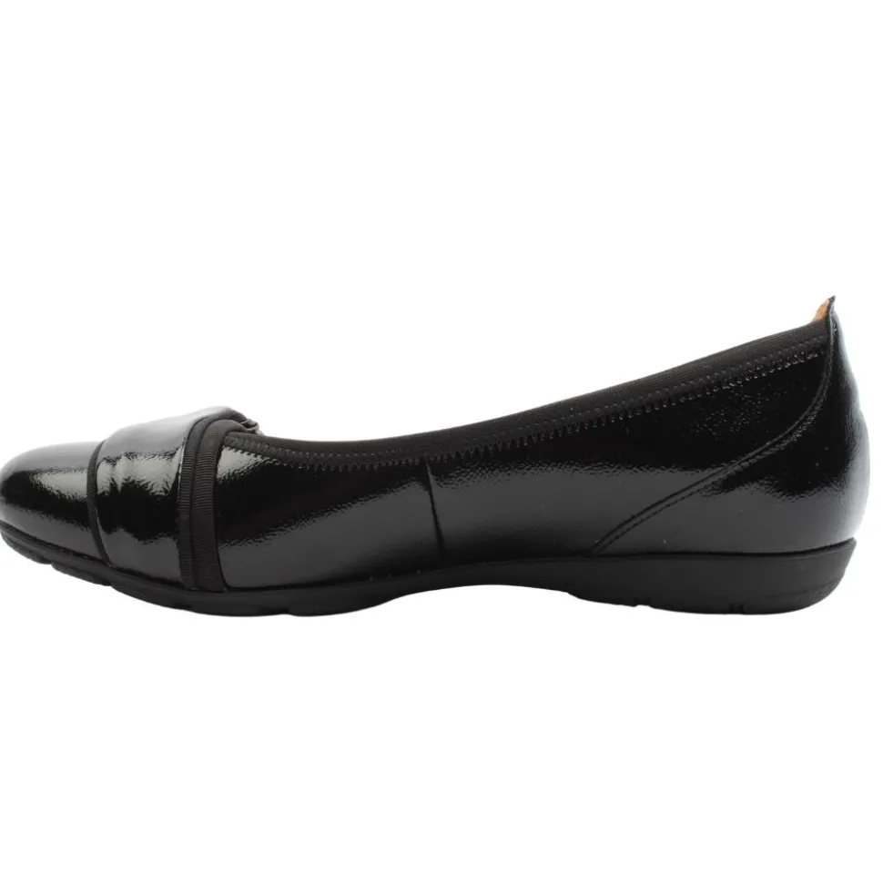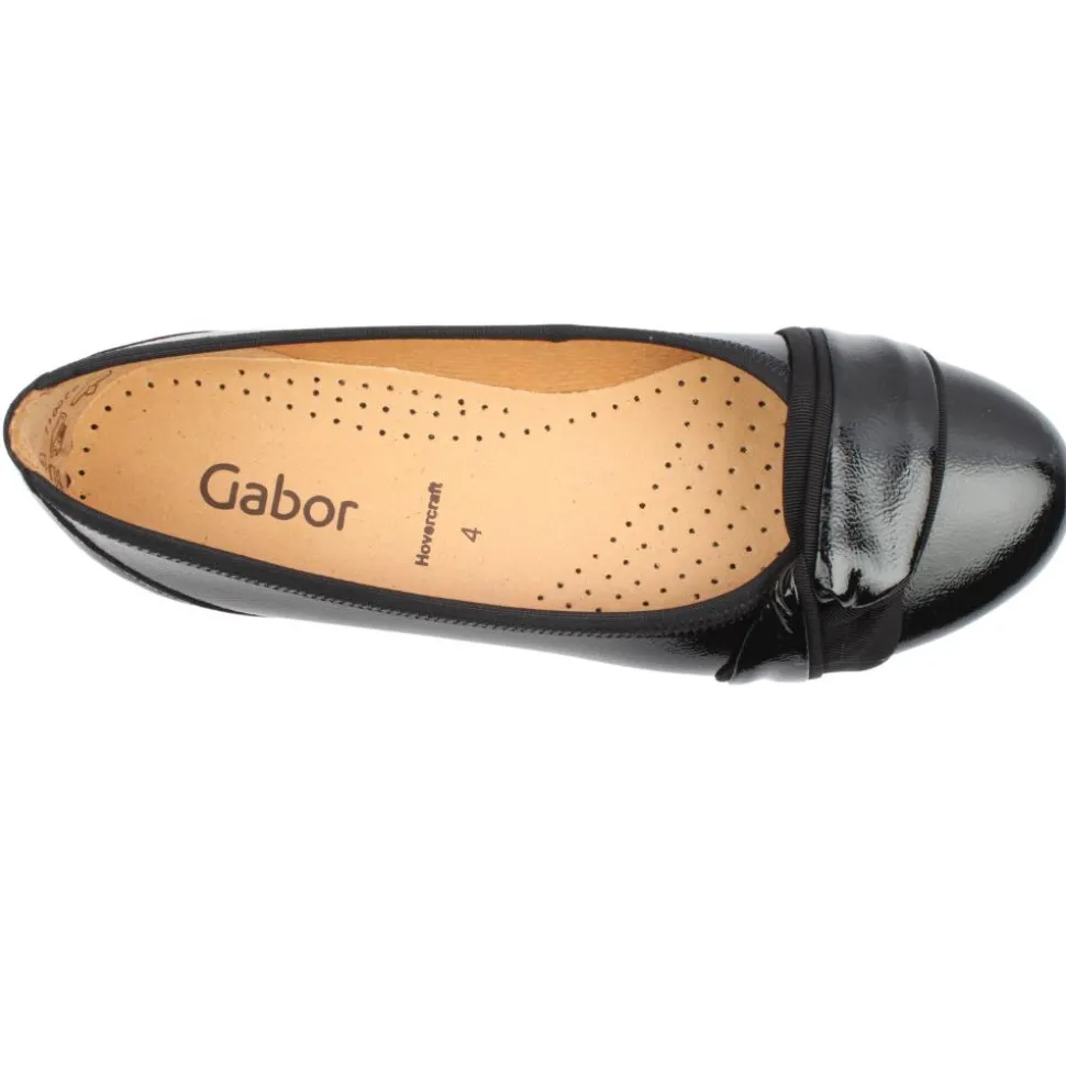 Elevate your everyday elegance with the Gabor Ladies Black Patent Pump featuring the innovative Hovercraft insole. Designed for standard fittings, these pumps offer a cushioned, soft insole that ensures superior comfort with every step. The lightweight, flexible outsole enhances your walking experience, making these pumps perfect for both casual and formal occasions. Embrace the perfect blend of style and comfort with these timeless black patent pumps.