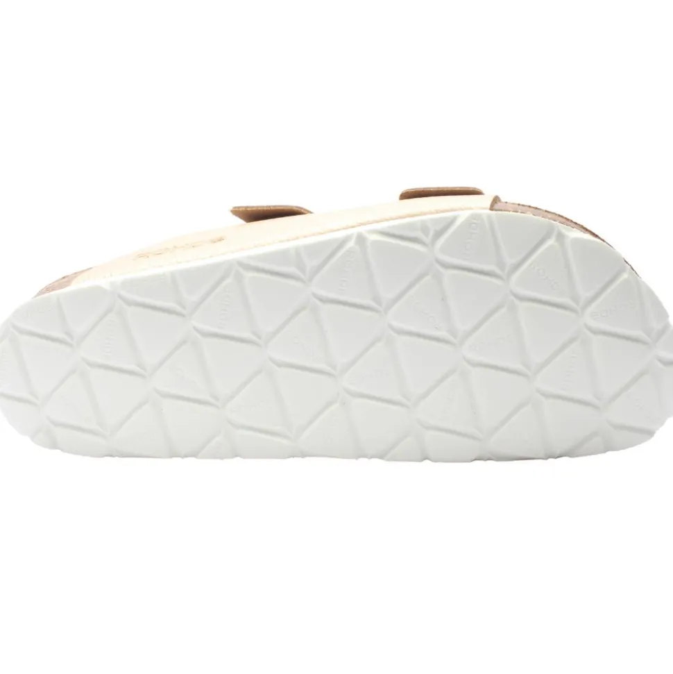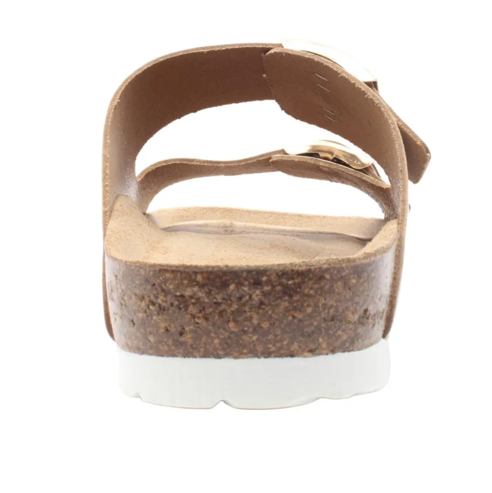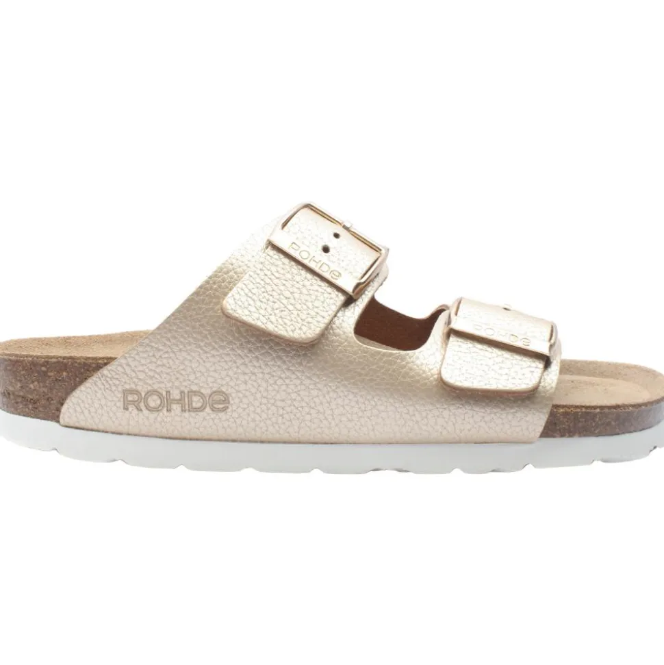 Slip into comfort with these Ladies sandals from Rohde shoes.These ladies mules are designed featuring a stylish gold leather upper paired with a cushioned leather insole and a flexible outsole.This mule is designed with adjustable straps fastened by a stylish silver buckle closure.