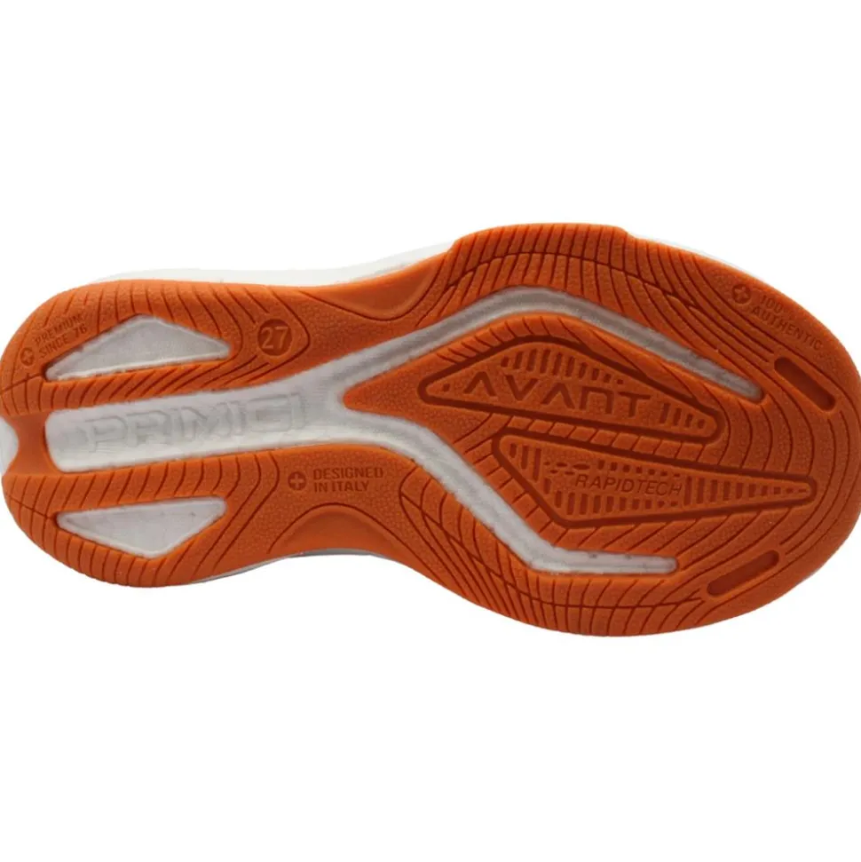 Boys Runner by Primigi, featuring a vibrant green upper accented with bursts of orange and blue. This runner boasts a convenient design with both elastic laces and a velcro strap closure, ensuring effortless on and off. Enjoy lasting comfort and support throughout the day with its removable leather insole.