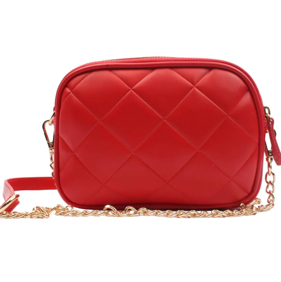 Add a touch of elegance to your look with the Marco Tozzi 261136 Gold Bag. This chic and compact accessory features a sleek red finish, perfect for both casual and evening wear. Designed for practicality and style, it includes two zip compartments to keep your essentials secure and organized. The silver chain shoulder straps add a modern contrast, giving the bag a sophisticated edge.