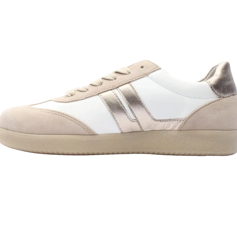 Step up your casual style with the Gabor 63300 Ladies Fashion Runner, a perfect blend of comfort and elegance. Crafted from premium white leather with beige suede, this stylish sneaker offers a soft and sophisticated look that pairs effortlessly with any outfit. Designed for all-day wear, it features a removable Best Fit leather insole, providing superior cushioning and support. The lightweight gum outsole ensures excellent grip and flexibility, making every step feel effortless. Whether you’re running errands or enjoying a casual day out, these fashion runners offer the perfect combination of style, comfort, and practicality.