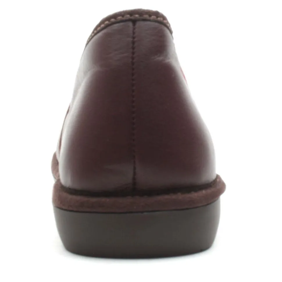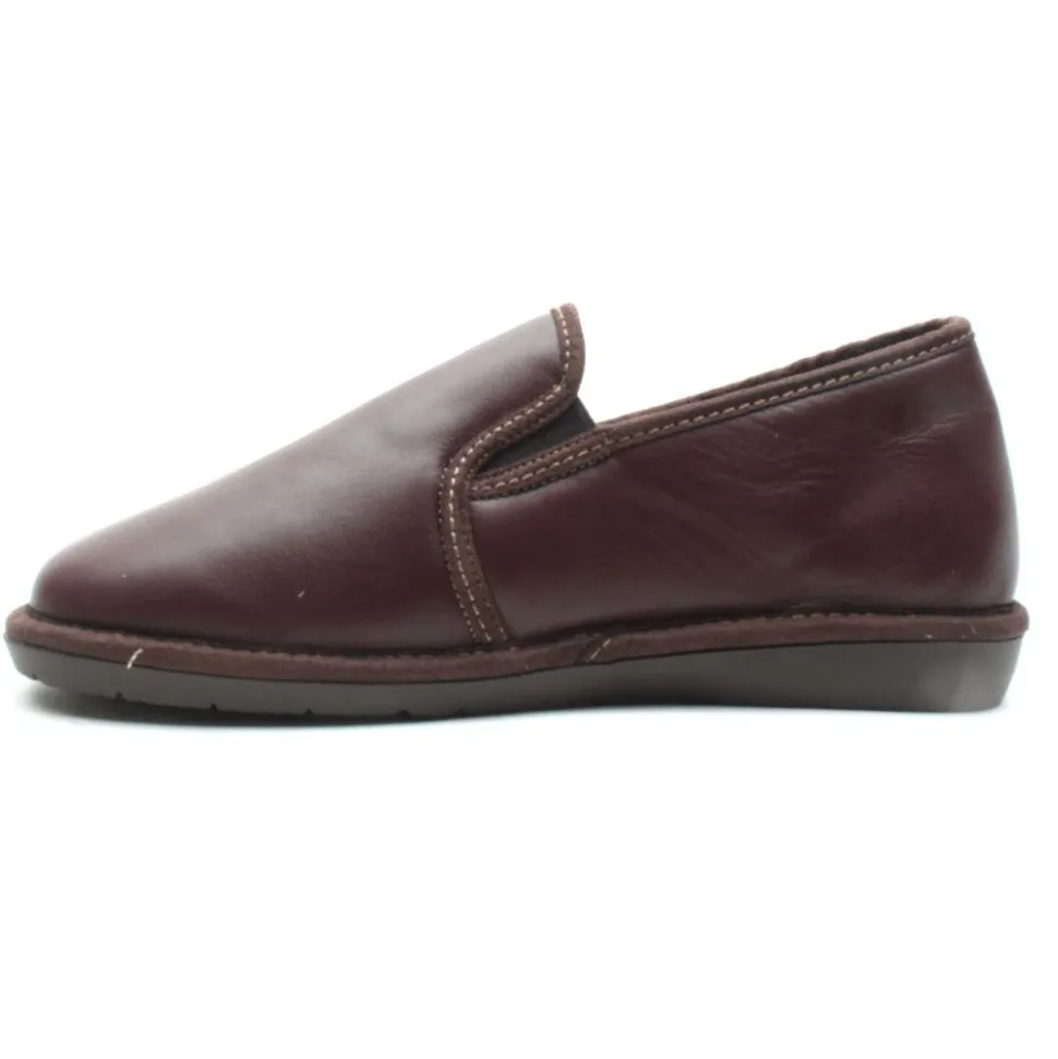Fleece lined slip-on leather slipper. Features anti stress inner sole while allowing for maximum flexability and support. Elasticated gussetts ensure easy foot entry & removal.