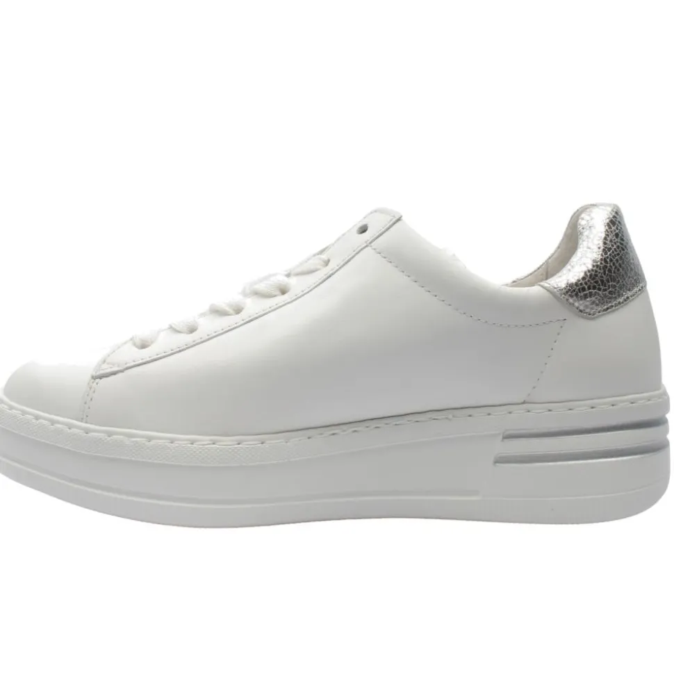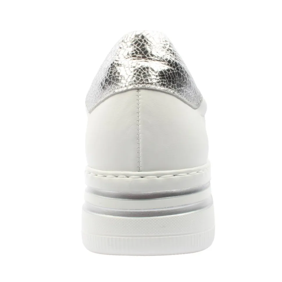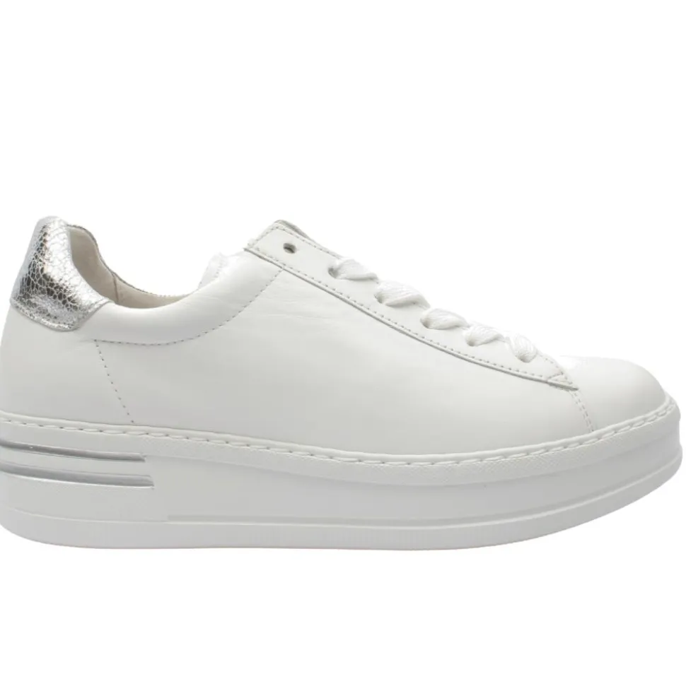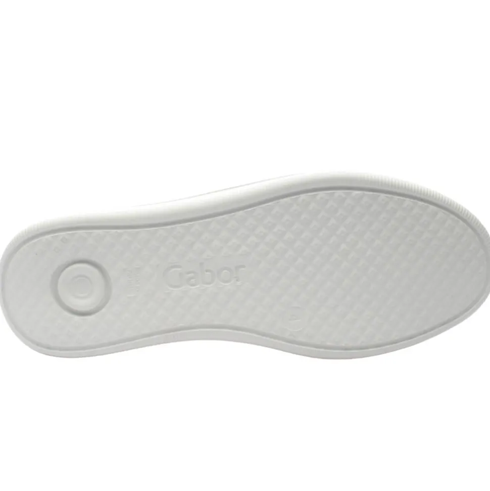 Experience style and comfort with these Gabor Ladies shoes. Designed in a smooth white lether upper with subtle silver details. A low profile platform sole offers a modern silhouette with gentle elevation for style and stability. Featuring a removable Gabor shoes Opti Fit leather Insole which allows for personalised comfort or orthotic use, ensuring a perfect fit. Its a wide “G” fit to provide ample toe space for a relaxed and pressure-free experience.