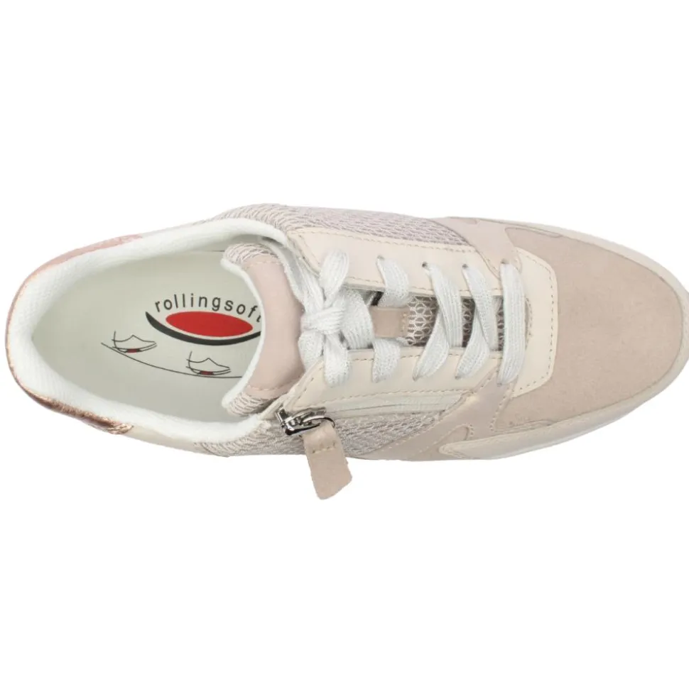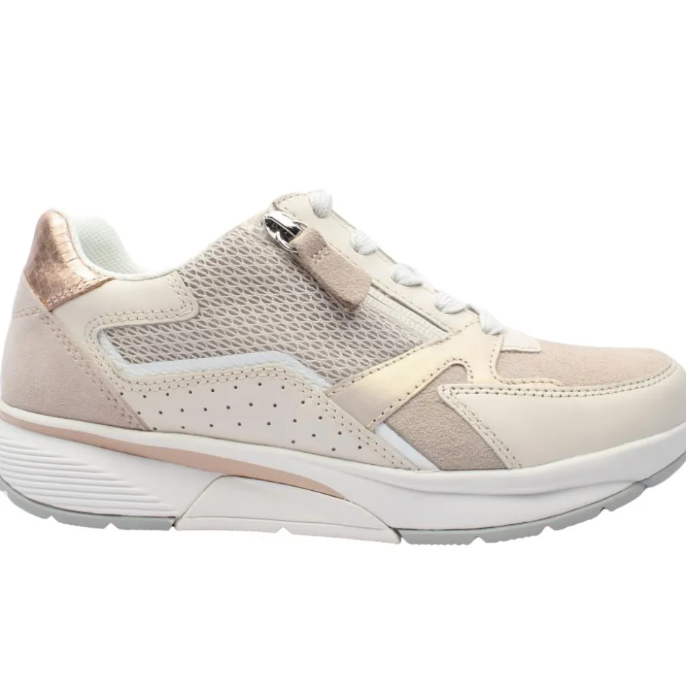 Ladies casual shoes from the Gabor Rolling Soft shoes range designed in a leather/textile combination upper.The side zip & lace closure makes it an easy style to put on & take off and allows for a customised fit.Featuring a removable leather insole to allow for a custom orthotic if need be. With its unique curved sole, the Gabor Rolling Soft shoes are engineered to gently roll you from step to step, enhancing natural movement with every stride.