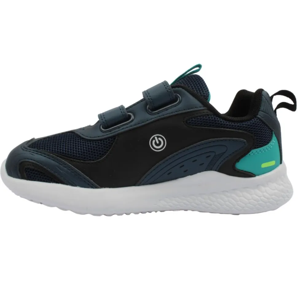 Introducing the Primigi Boys Runner, Style 6979911 in Navy Multi, designed for active young adventurers. This stylish and functional sneaker features double Velcro straps, making it easy for kids to put on and take off independently. A standout feature is the light embedded in the side of the shoe, which can be turned on or off with a convenient button, adding a fun and playful element. Inside, a removable leather insole provides added comfort and breathability, ensuring a perfect fit and easy maintenance.