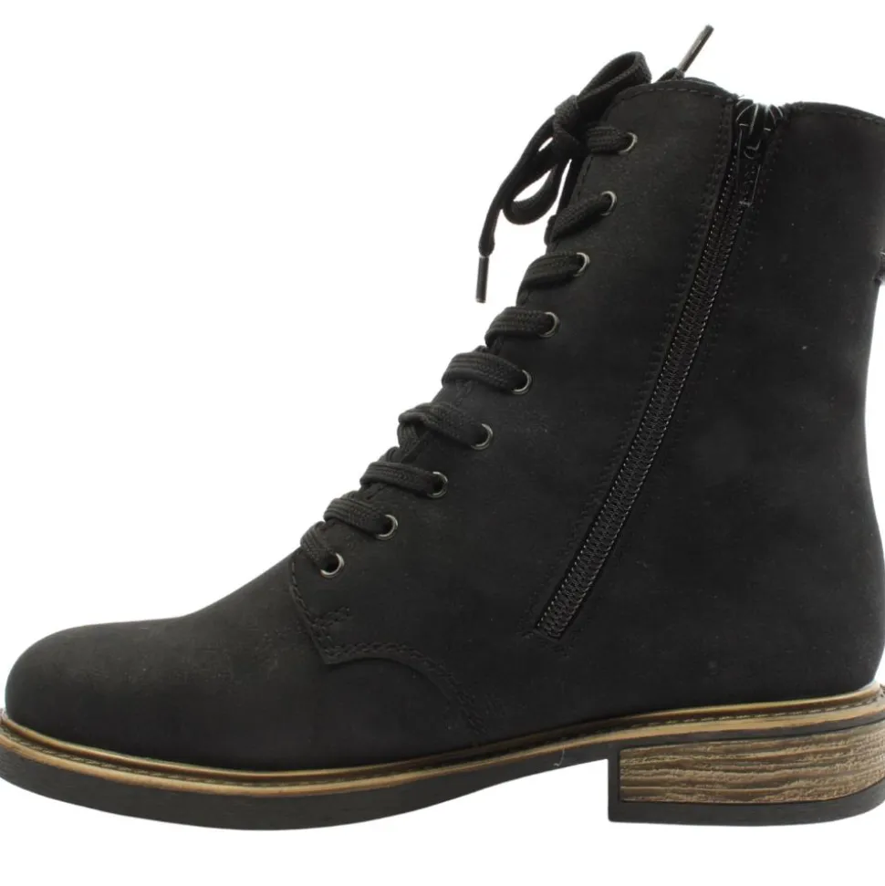 Stay warm and cosy in these causal Rieker ankle boots with a plush fleece lining. The lcombination of lace-up and zip closure ensures a secure fit and customisable fit. The Rieker antistress insole ensures superior comfort that supports your feet throughout the day.