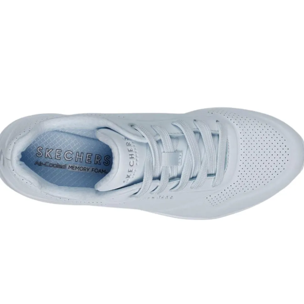The Skechers UNO are one of the best selling ladies trainers from the Skechers shoes range. These trainers have a light blue upper.This runner was designed using a Skechers ‘Air-Cooled Memory Foam’ insole & has a padded collar & tongue which adds to the comfort of the runner. This runner is perfect for everyday casual wear!