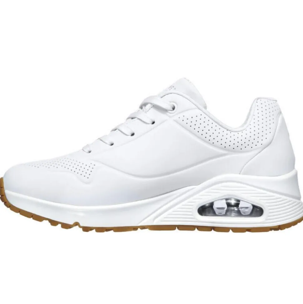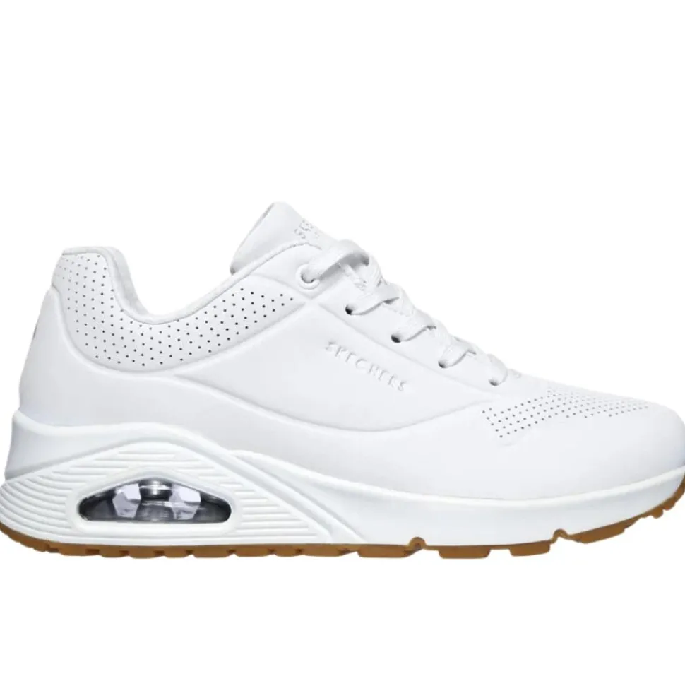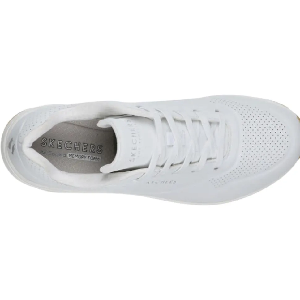 The Skechers UNO are one of the best selling ladies trainers from the Skechers shoes range. These trainers have an all white upper so are perfect for casual wear with many outfits. This runner was designed using a Skechers ‘Air-Cooled Memory Foam’ insole & has a padded collar & tongue which adds to the comfort of the runner. This runner is perfect for everyday casual wear!