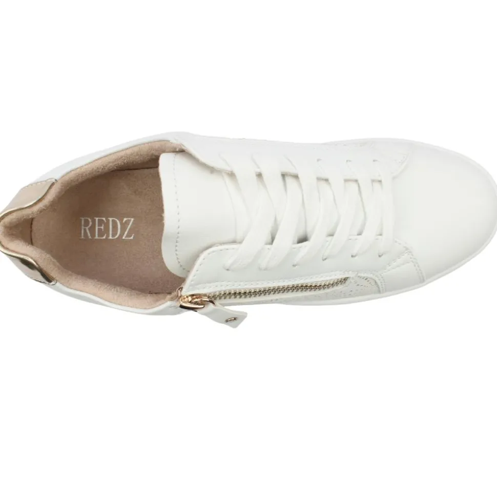 Presenting a versatile everyday Ladies Trainer from Redz, these ladies’ shoes feature a delightful soft white upper adorned with cut-out detailing along the side. The shoe is designed for convenience with a zip and lace, ensuring easy on/off functionality. A low profile platform outsole and removeable cushioned insole offers extra comfort for all day wear.