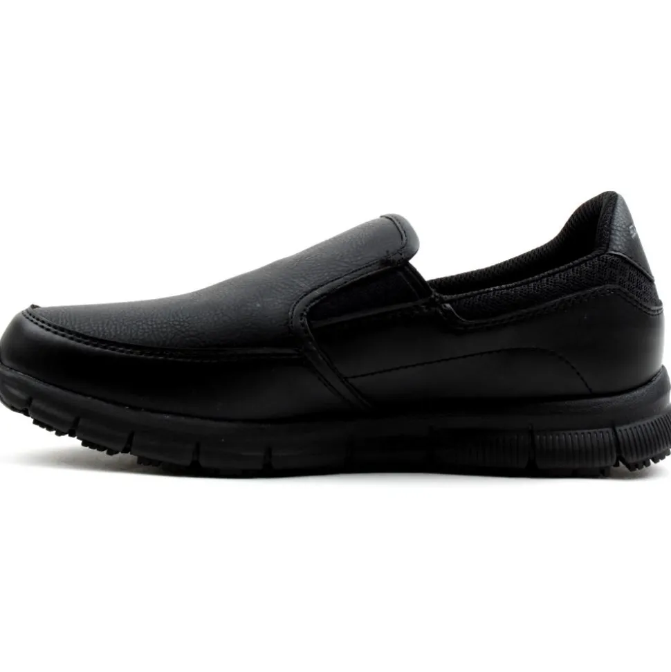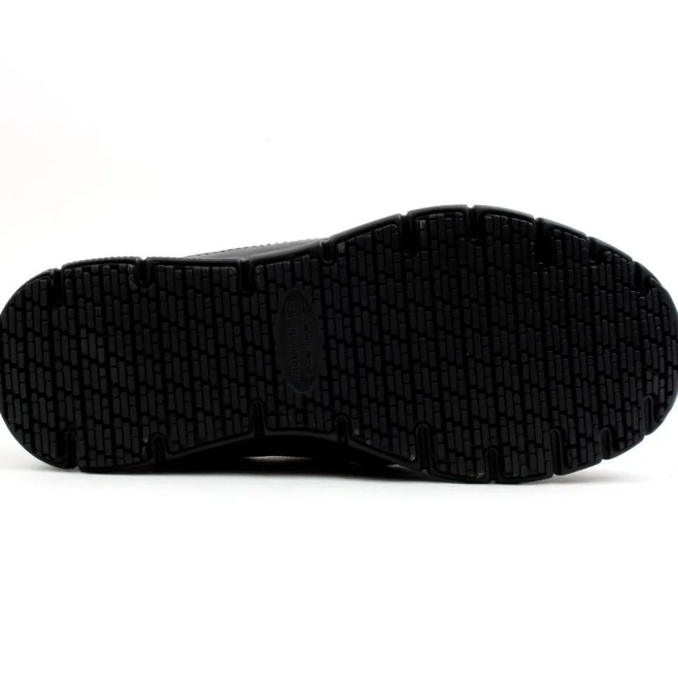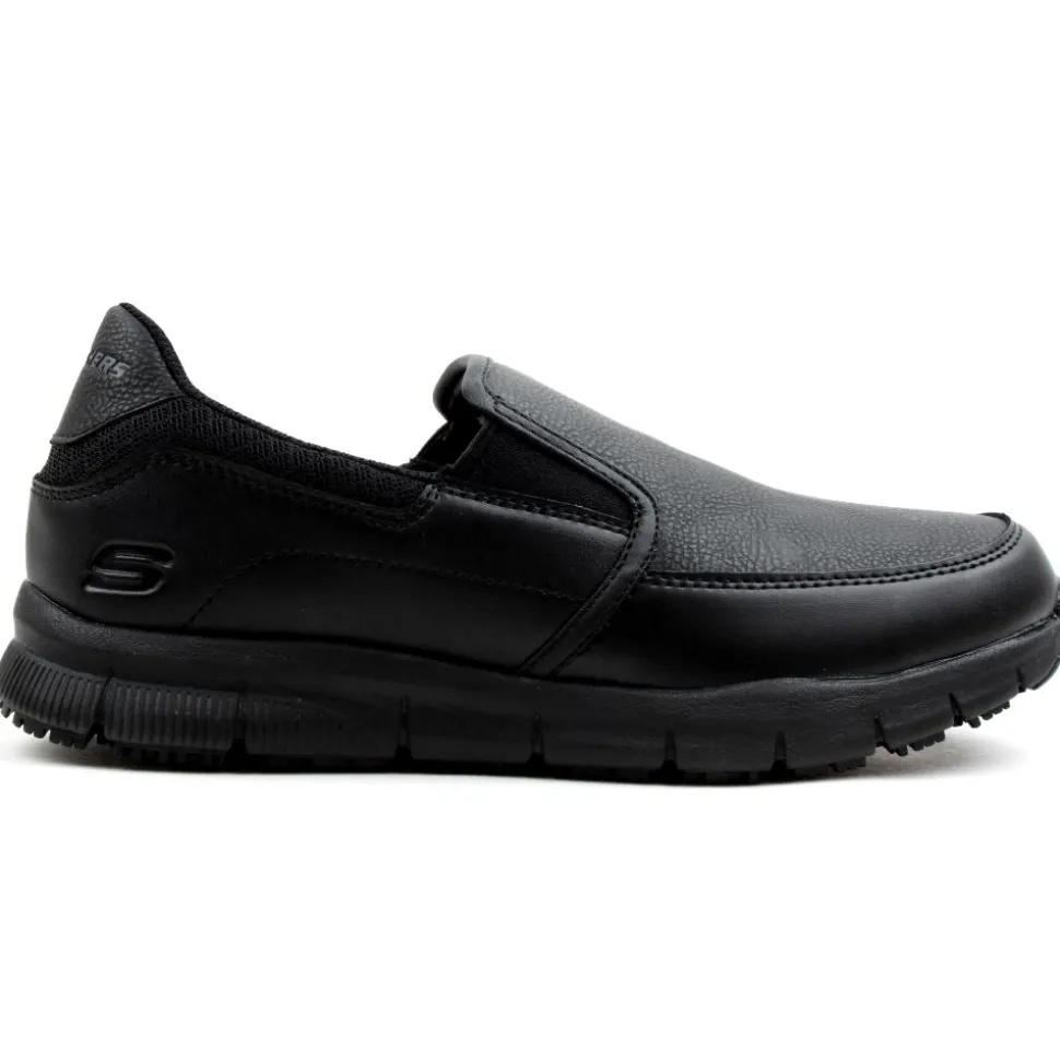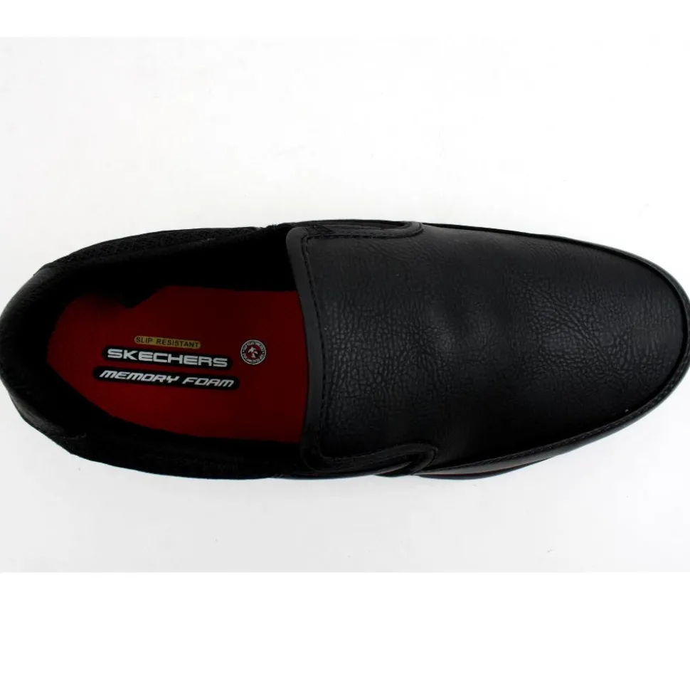 A light, slip resistant slip on shoe from Skechers work wear. This style from Skechers womens work wear is a relaxed fit ensures a roomier comfort fit. The memory foam insole and the padded collar will provide comfort and support for all daywear. Double elastic gussets for improved fit. The rubber outsole is slip resistant. Complies with EU Regulation for Personal Protective Equipment.