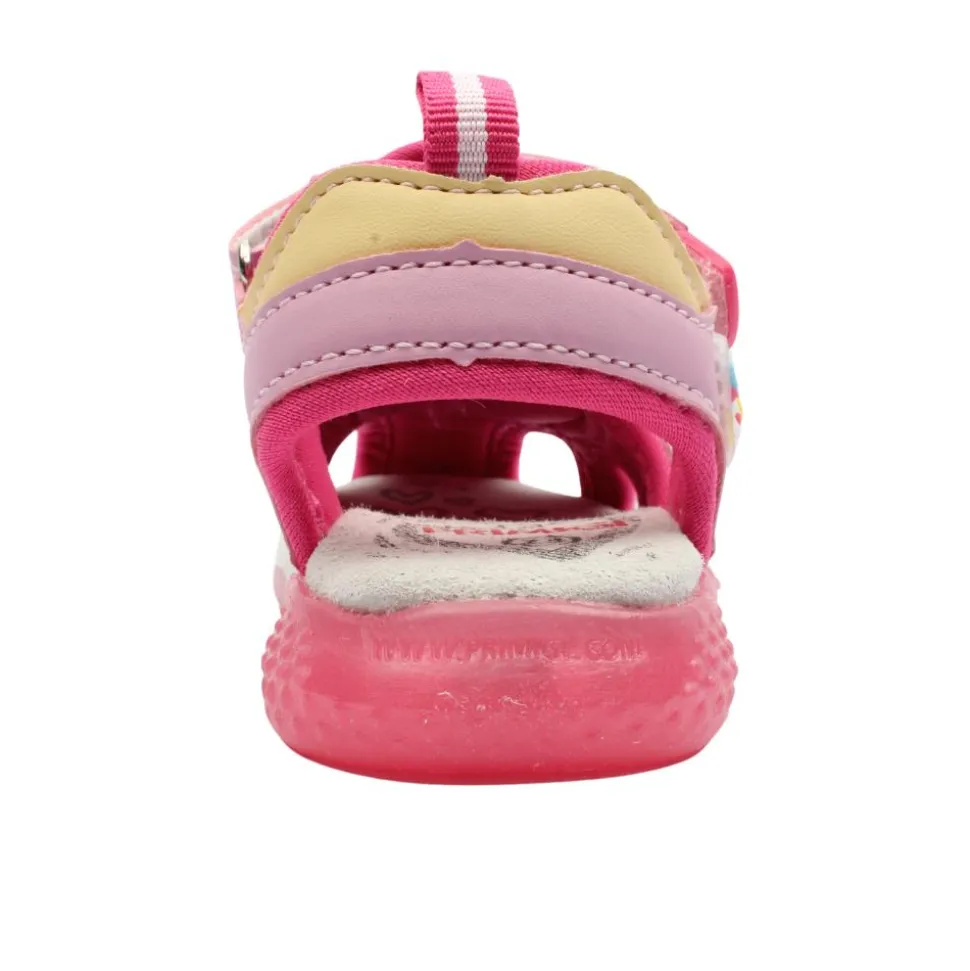 Adventure-ready and built for comfort, the Primigi 7955511 Girls Closed Toe Sandal in pink is perfect for little explorers. Featuring a fun unicorn design on the side and a flashing pink light in the outsole, every step brings a touch of inspired excitement. The closed toe design offers extra protection, while the Velcro ankle strap ensures a snug and supportive fit. Lightweight and breathable, it’s ideal for sunny days full of play.