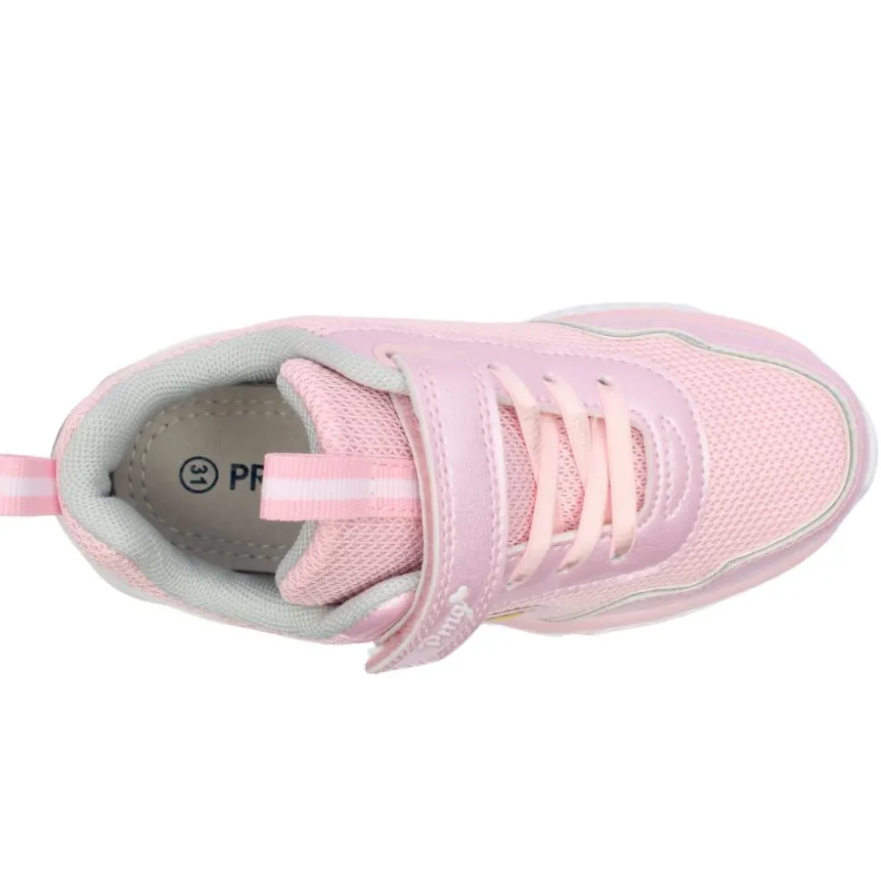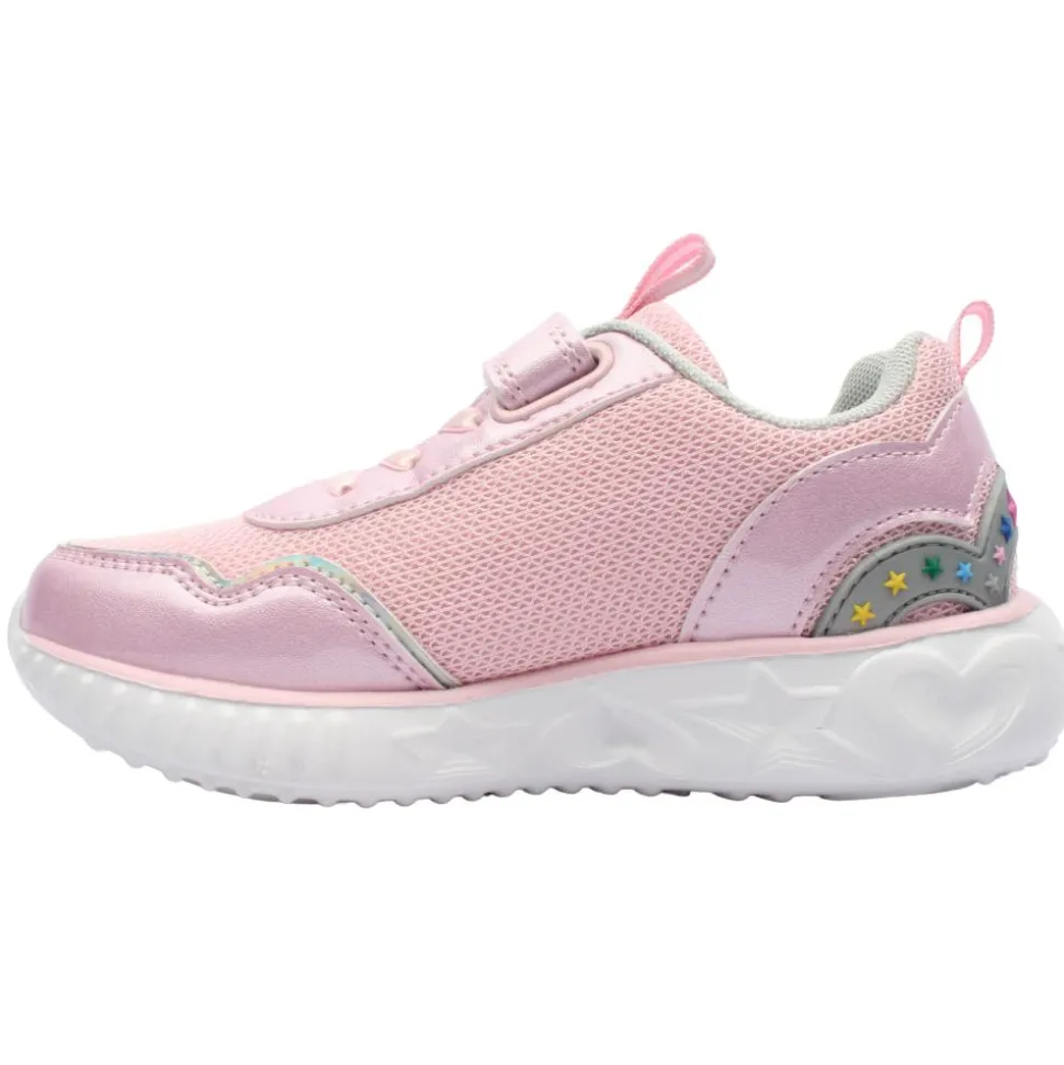 Add a little sparkle to her every step with these adorable Primigi Girls Runners 7967022 in pretty pink! Featuring flashing lights in the outsole, these shoes light up with movement – perfect for playful little feet. Designed for easy wear, they come with elastic laces and a single Velcro strap for a snug fit and fuss-free on/off. A removable leather insole offers breathable comfort, while heart and star detailing adds a magical finishing touch she’ll love.