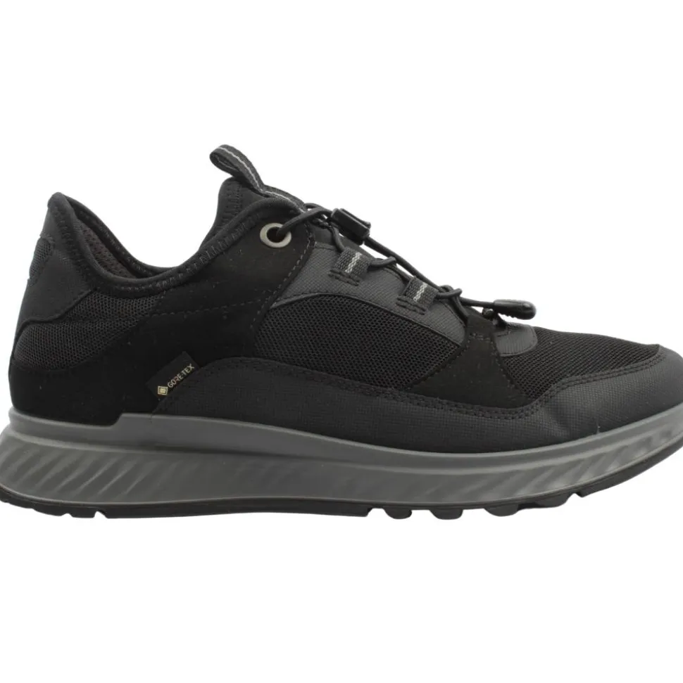 Waterproof ladies shoes from our Ecco ladies range. Sleek, low-cut trainers designed in a black upper.The shoe has an elasticacted lace closure with a toggle to secure on the foot. Removable insole provides optimal fit.This trainer has a GOR-TEX lining, meaning it is guaranteed waterproof.