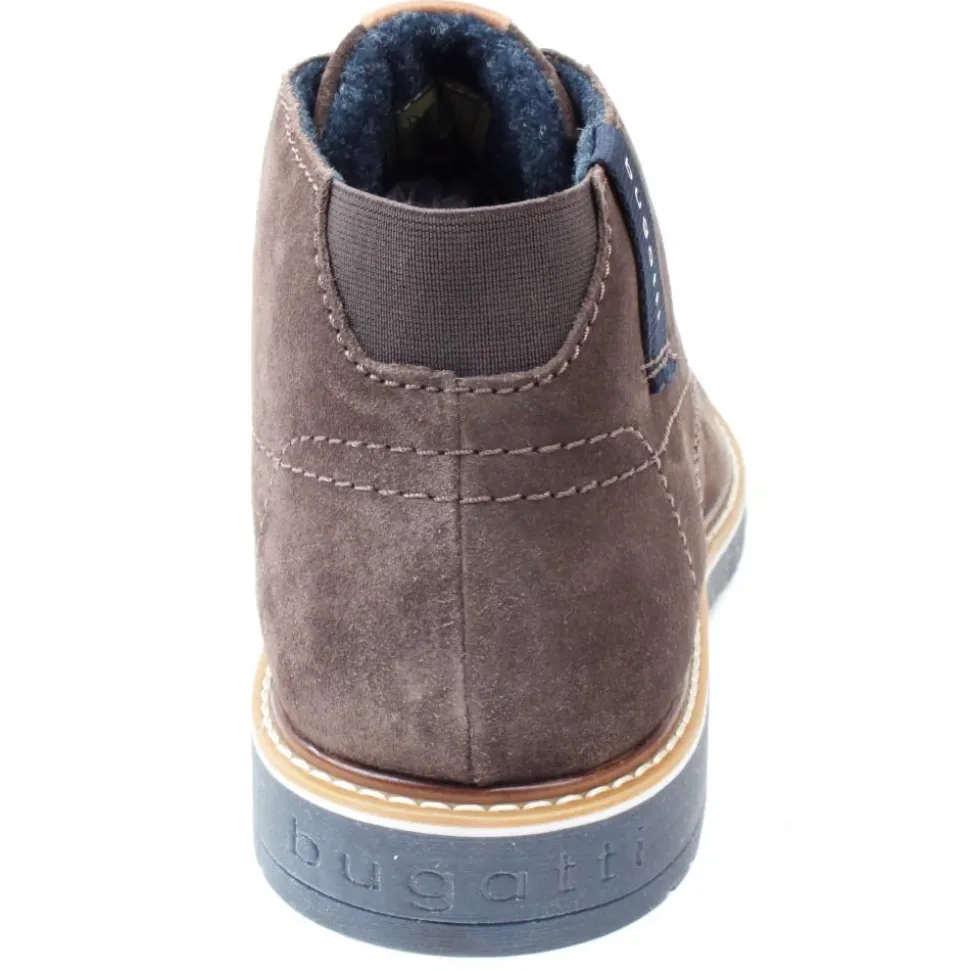 Stylish mens boots from the Bugatti Shoes range. These mens boot have a dark grey nubuck Leather upper with Bugatti branding on the tongue and on the side of the boot. This style is lightweight with a cushioned leather insole for all day comfort.