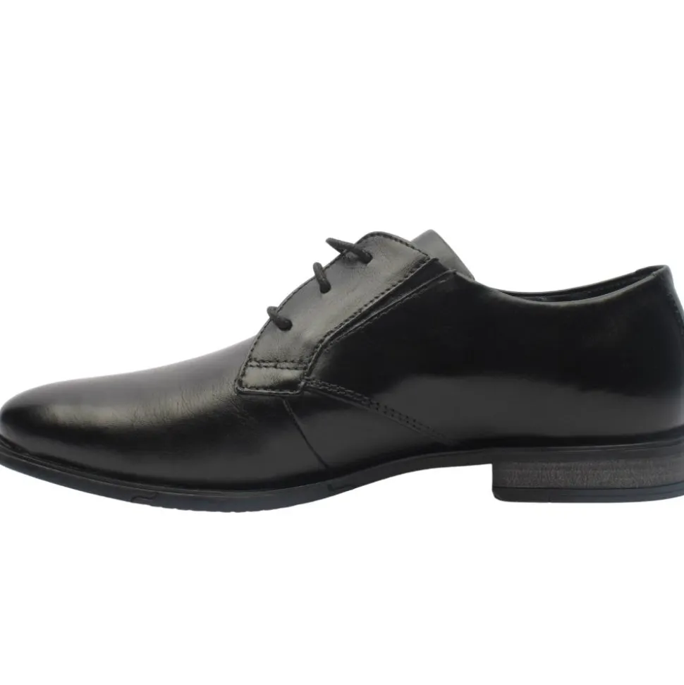 Sleek formal men’s shoes from Bugatti Shoes. This shoe has a soft black leather upper with subtle Bugatti branding. This style has a double elasticated gusset & is a comfort width which allows for extra toe room ensuring all day comfort.Perfect for a formal occasion or for office wear!