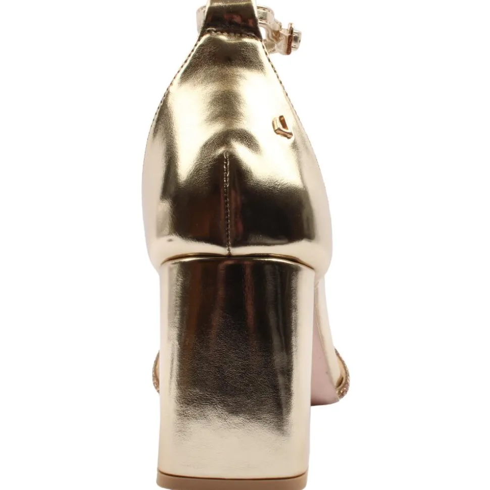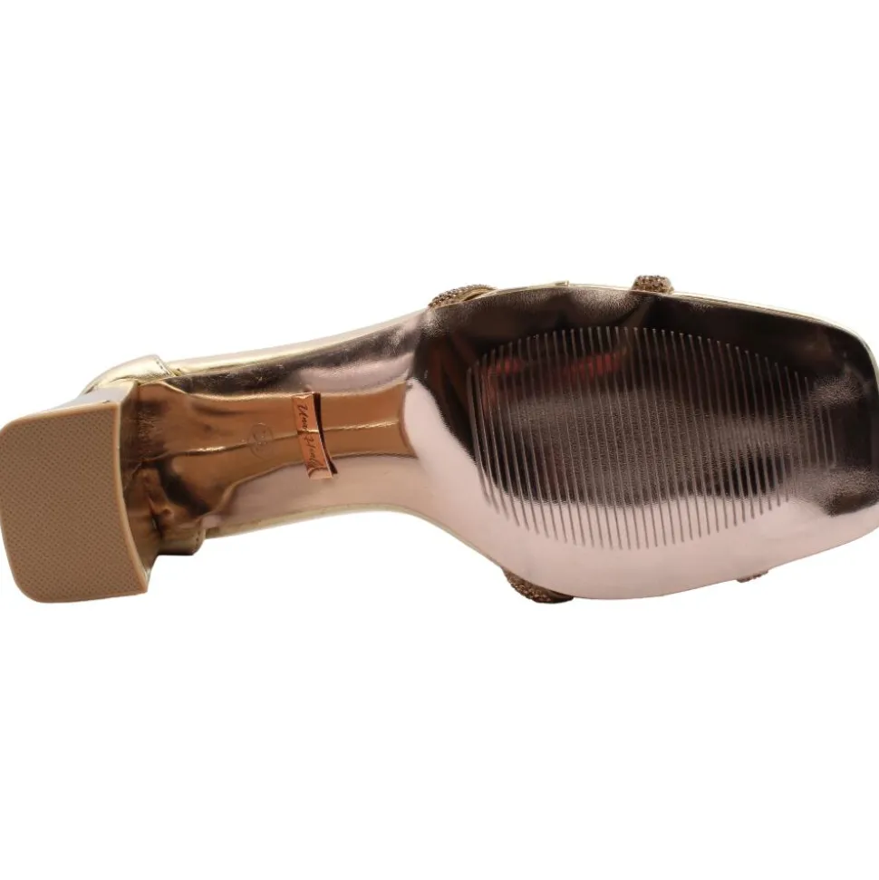 Dressy high heel sandals from Una Healy shoes. These stunning sandals feature a gold upper with a square toe design. The gold sequined strap design with intricate knot detailing, exudes sophistication and luxury. The shimmering sequins add a touch of sparkle to your outift.
