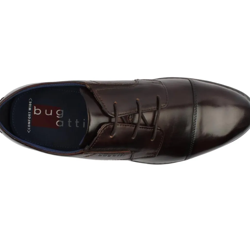 The Bugatti men’s formal shoe, model AO501, in a rich dark brown burnished leather is designed for both style and comfort. These shoes feature lace-up fronts complemented by elastic gussets, providing extra room and ease of wear. They offer a comfort wide fitting, making them suitable for those with wider feet. Additionally, the cushioned insole ensures that they remain comfortable even during extended periods of wear, making them a great choice for formal occasions or everyday office wear.