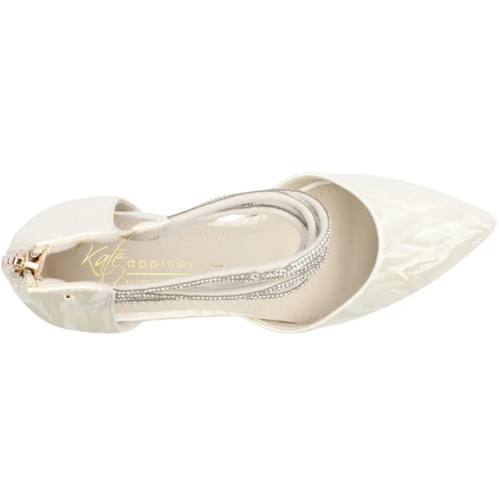 The Kate Appleby Appledore shoes features a chic and eye-catching design, perfect for special occasions or adding a touch of glamour to your outfit. These shoes have a pearl textured material upper, the straps are adorned with silver diamontes creating a glamorous look.