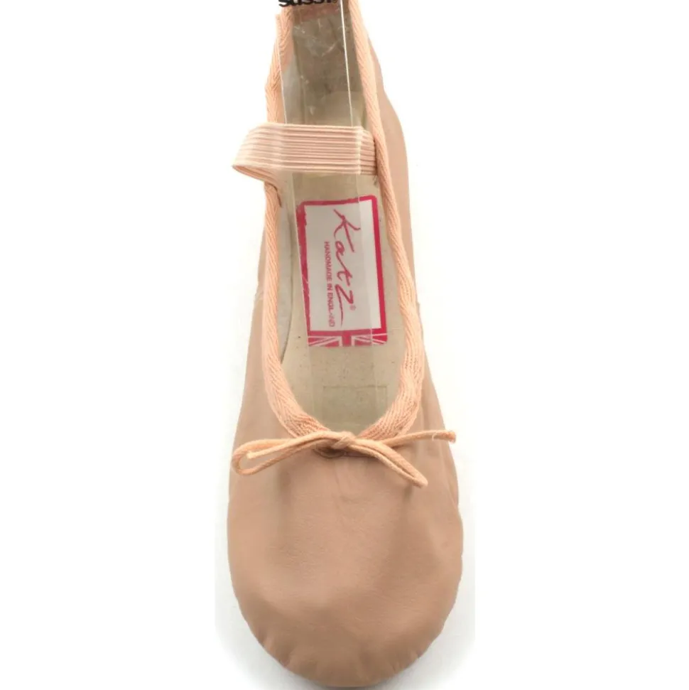 Ballet Pump from Katz Dance Wear. Elastic Band and Lace on collar which will tighten the style slightly around the foot. Available from Small Child’s size UK6 to Adult Size UK8.