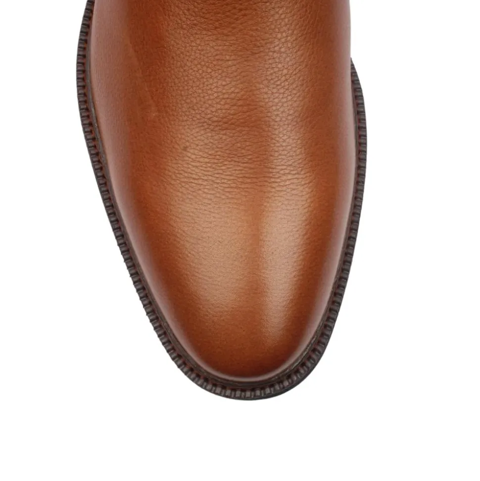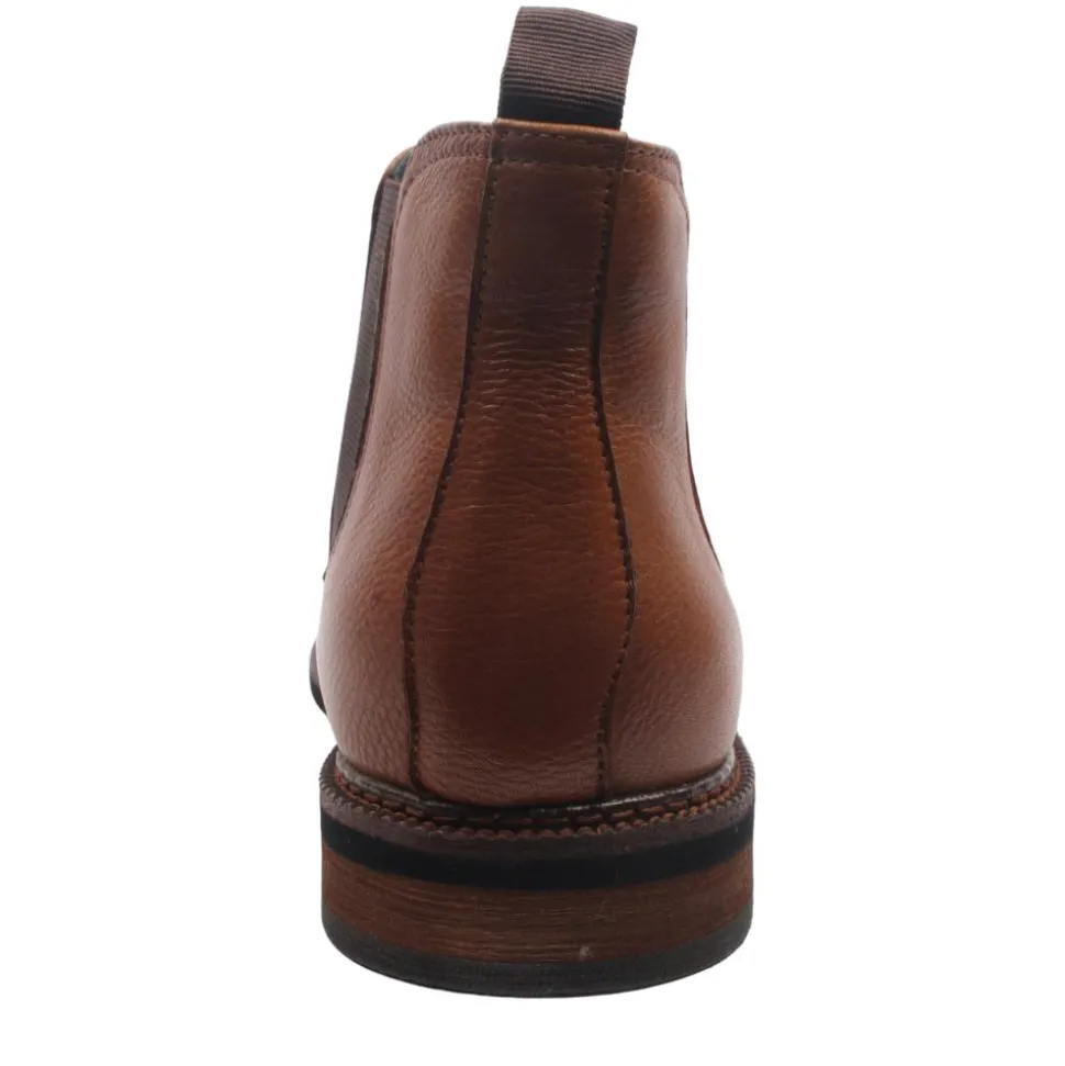 Classic men’s Chelsea boots from Escape Shoes. Crafted from a premium tan leather, these mens boots offer a smoth texture,adding a refined yet casual look to any outfit. Designed with elastic side panels and pull-on tabs, they ensure a sleek profile and slip on with ease. Perfect for pairing with jeans or chinos, these Chelsea boots are a versatile staple that seamlessly elevates both smart and casual attire.