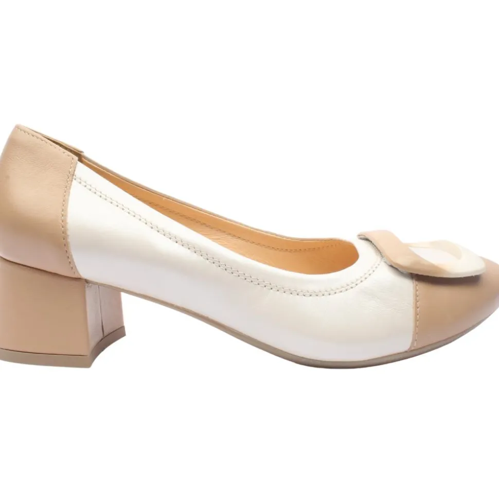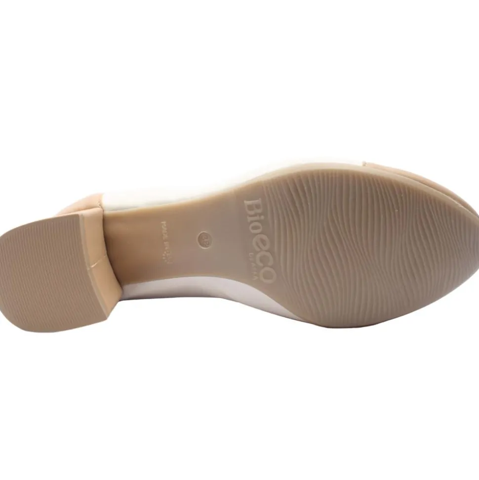 Womens block heel shoes from Bioeco shoes. Designed with a sophisticated Beige leather upper. The soft touch system insole allows optimal comfort all day long.