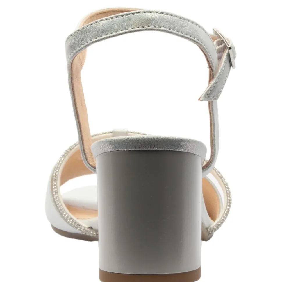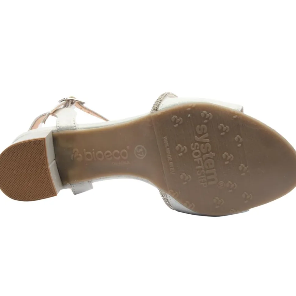 These Bioeco by Arka sandals are crafted from a shimmering silver upper.One of the standout features of the sandal is the diamante-adorned strap across the foot which adds a touch of sparkle and elegance.The block heel adds an extra element of comfort, making these sandals suitable for extended wear. The sandal is designed with BioEco SoftStep system for underfoot cushioning ensuring all day comfort. D esigned with a G wide fit, these sandals cater to those seeking both style and roomy comfort.