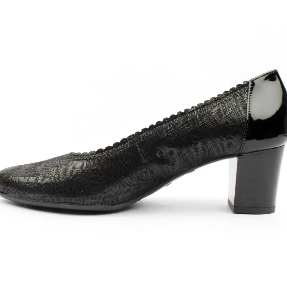 Ladies court shoes from Bioeco by Arka. This ladies slip on shoe has a rounded toe & block heel. A soft shimmer leather upper with elasticated edging for improved fit. Soft Step system for cushioned comfort.