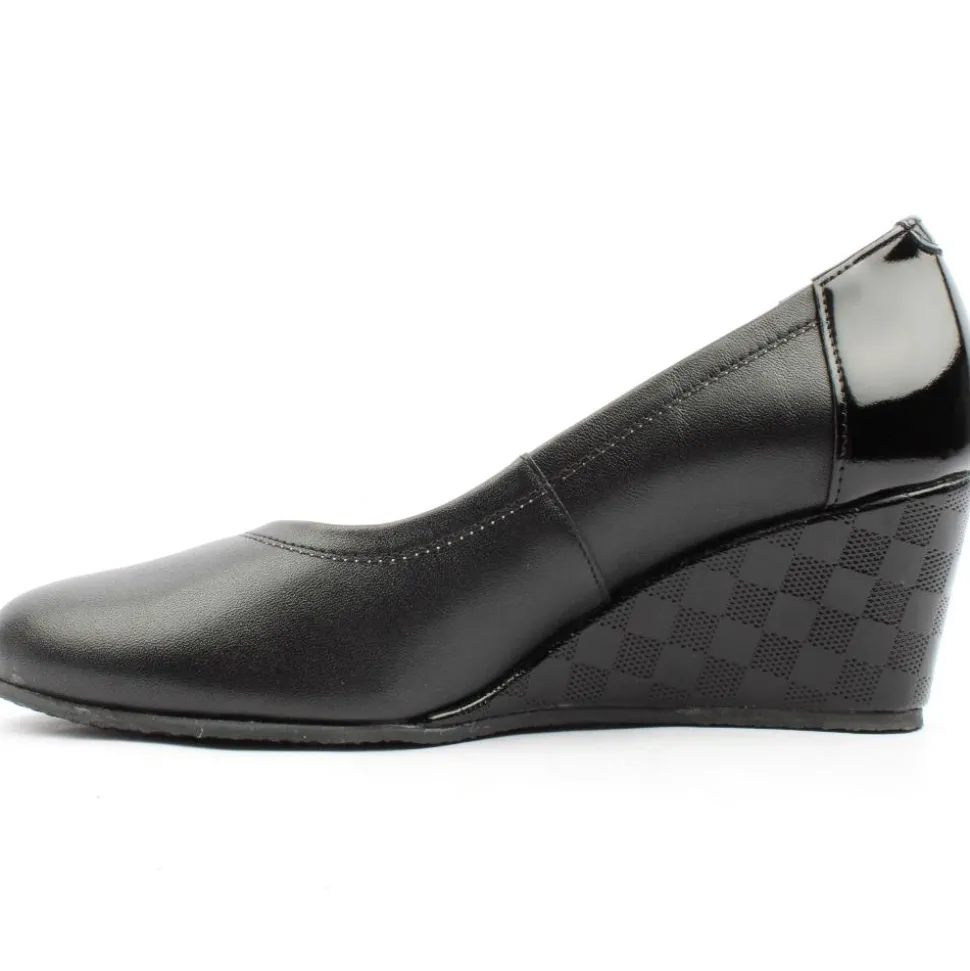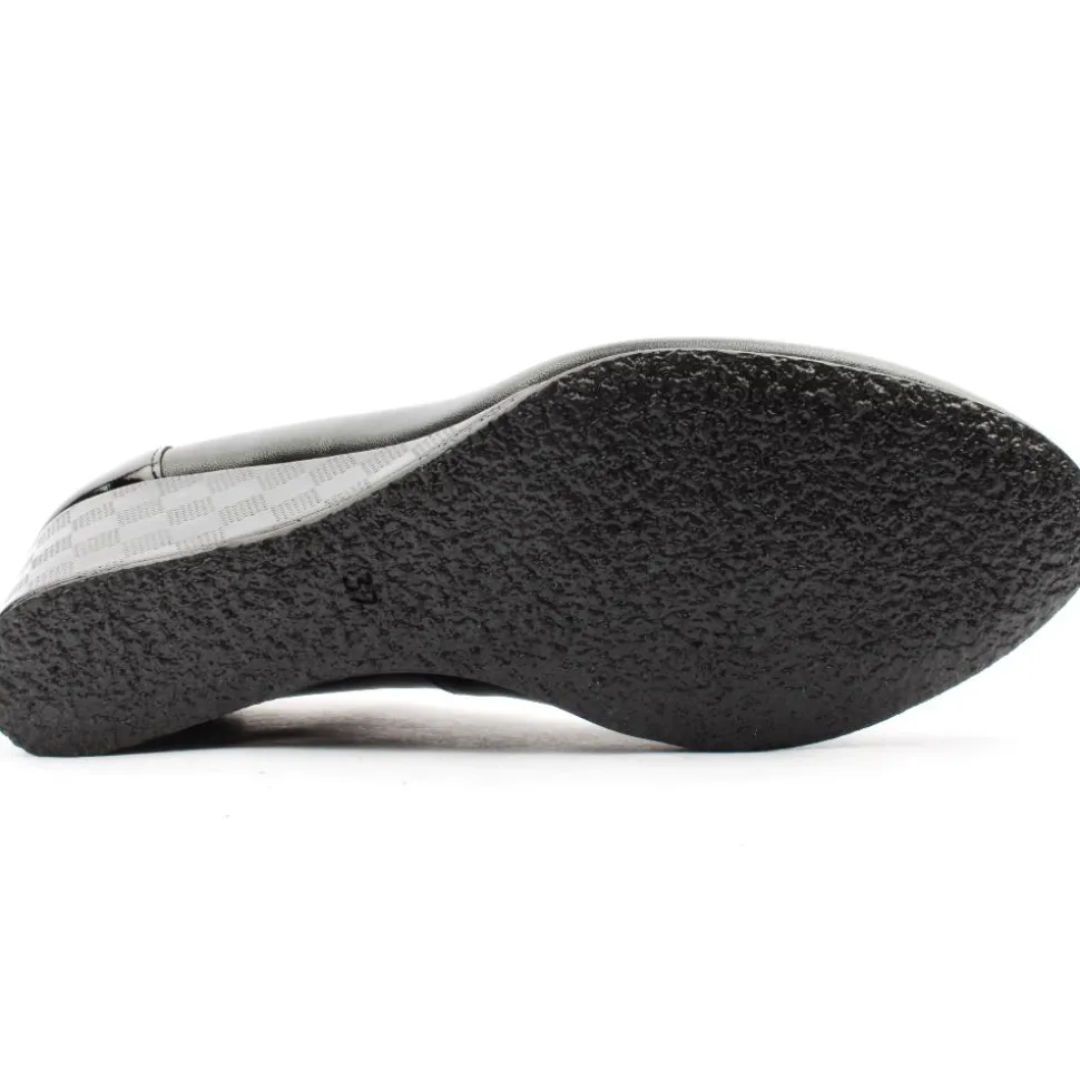 Ladies wedge shoes from Bioeco by Arka. These Ladies shoes have a soft leather upper with black detailing on heel and on wedge. They have a cushioned softstep system insole for all day comfort. The style is a G width.