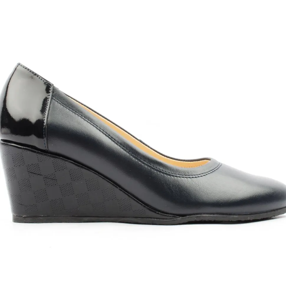 Ladies wedge shoes from Bioeco by Arka. These Ladies shoes have a soft leather upper with patent detailing on heel and on wedge, They have a cushioned softstep system insole for all day comfort. The style is a G width.