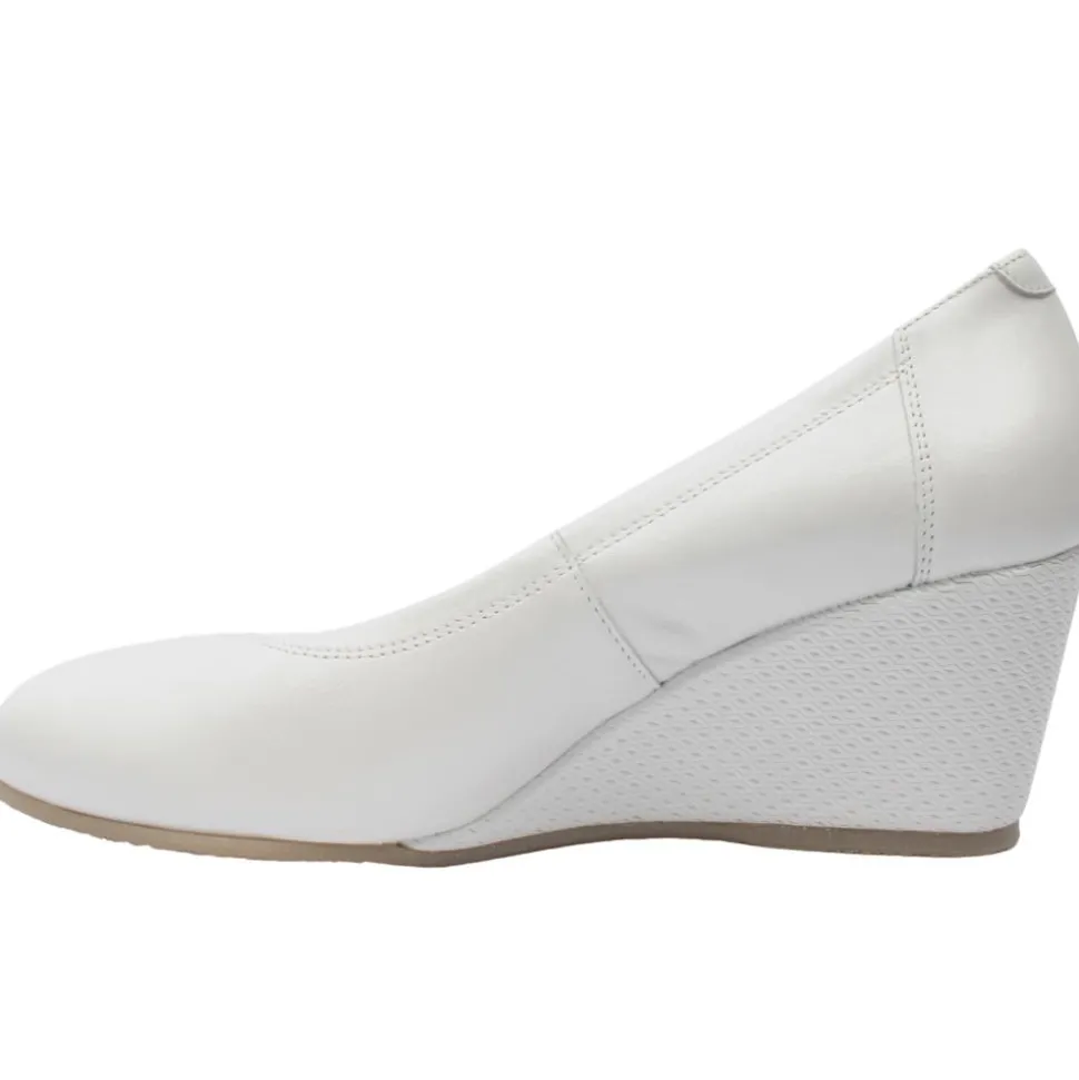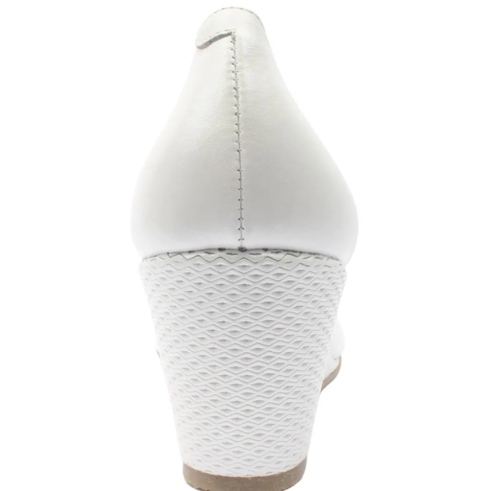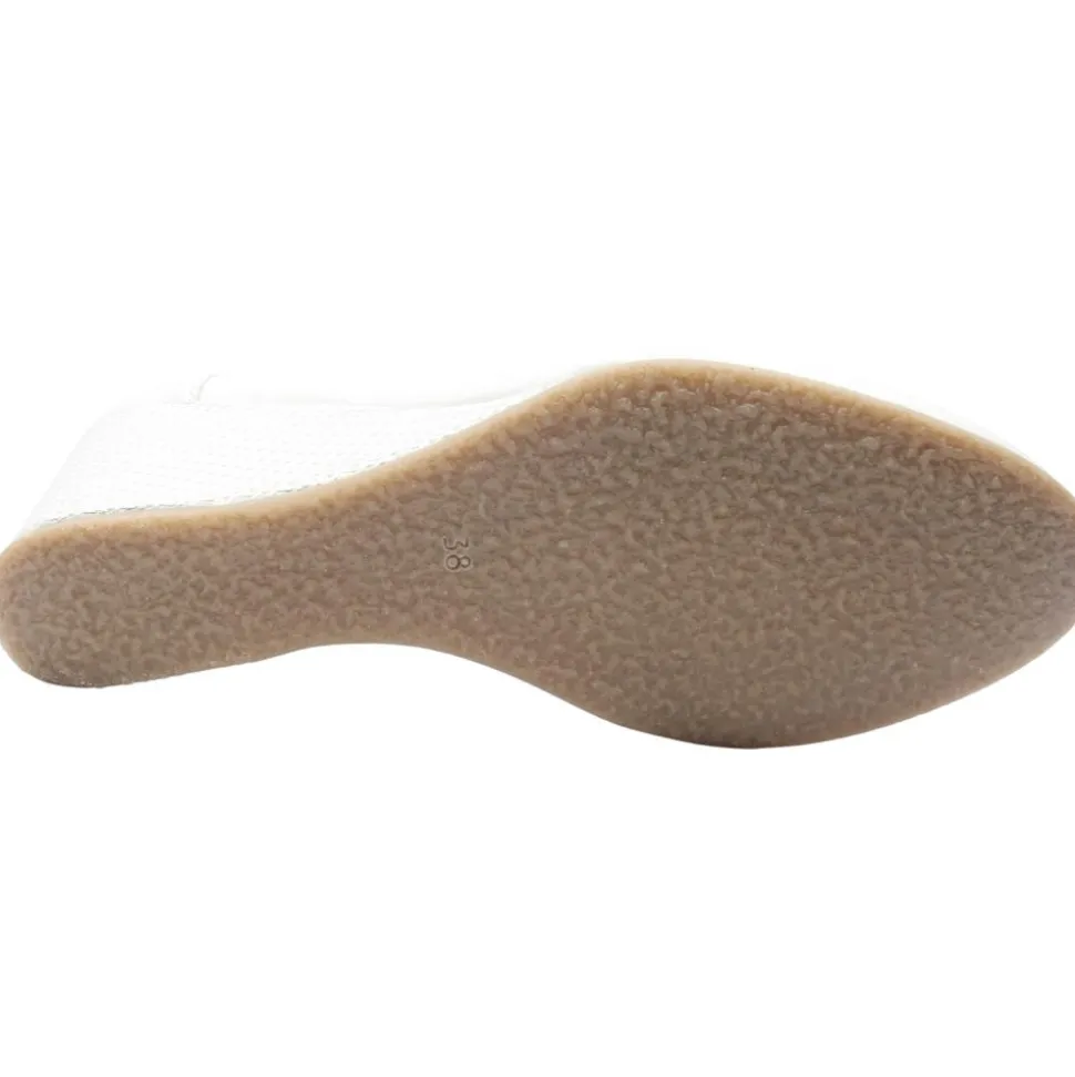 Ladies wedge shoes from Bioeco by Arka. These ladies shoes have a soft white leather upper, with a shimmer touch. They have Softstep System insole for all day comfort. The ‘G’ Fitting width is perfect for anyone who is seeking a comfortable and fashionable shoe.