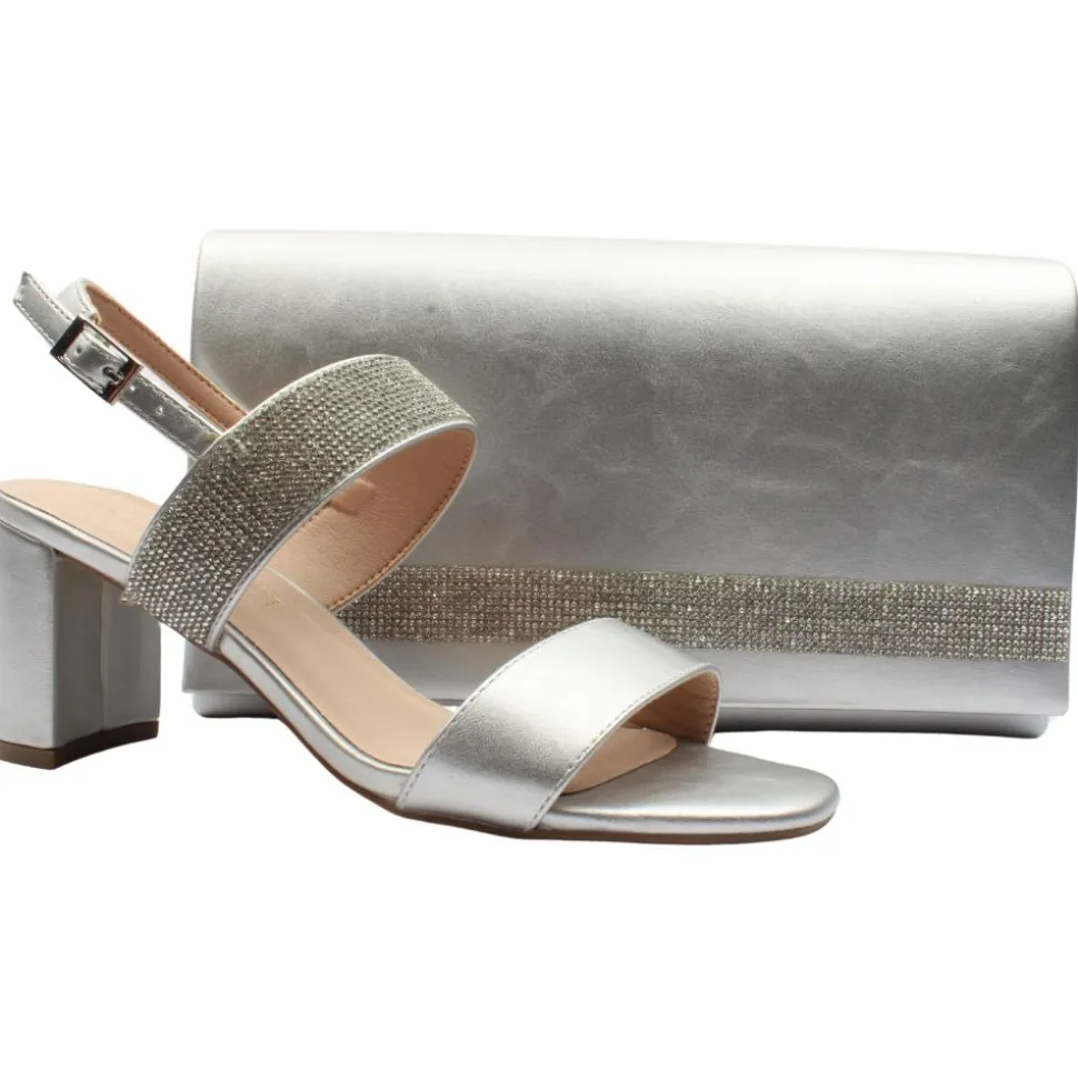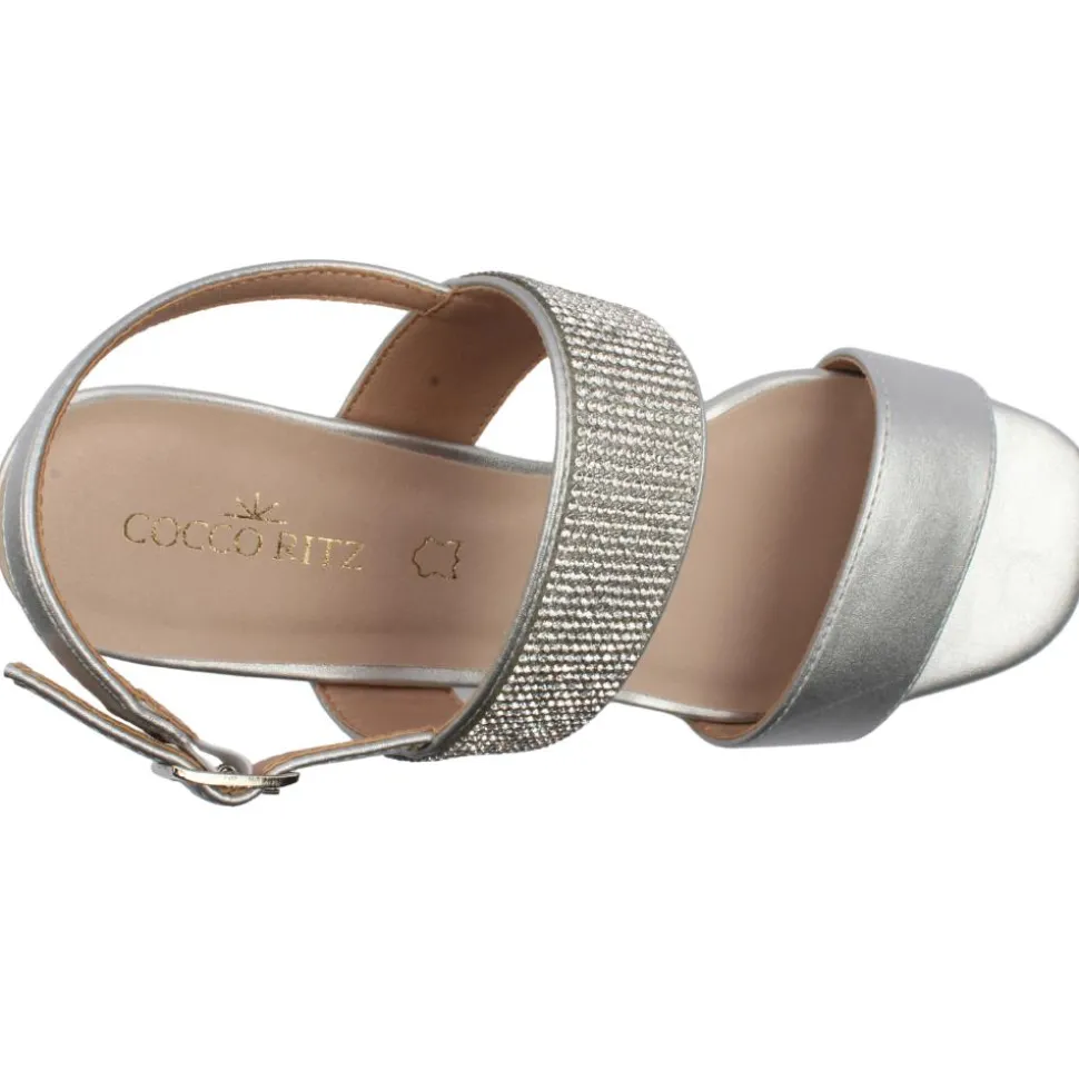 Dressy sandals from Coco Ritz Shoes. This sandal has a shimmering silver upper which will add a touch of sparkle to any outfit. This sandal has a block heel for added comfort and stability. A buckle closure allows for easy on/off.
