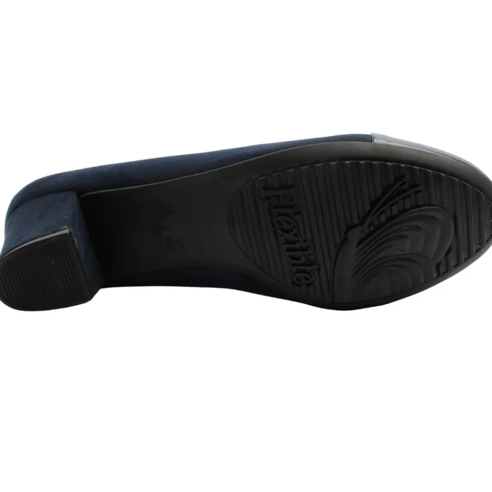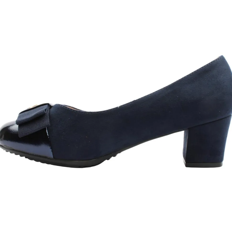 Stylish low heel court shoes from Cocco Rits Shoe in a stunning navy upper perfect for special occasions.These dressy shoes have a round toe & low heel making them a great choice for extended wear.