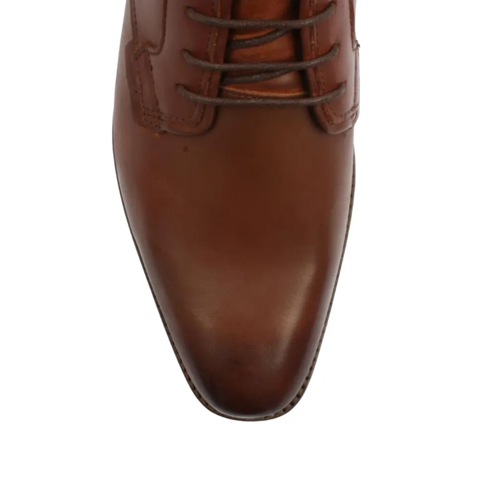 Dressy/casual mens boots from Escape Shoes. These stylish boots have a smooth tan leather upper with heel cap detailing. A padded memory foam insole adds to the comfort of this style.