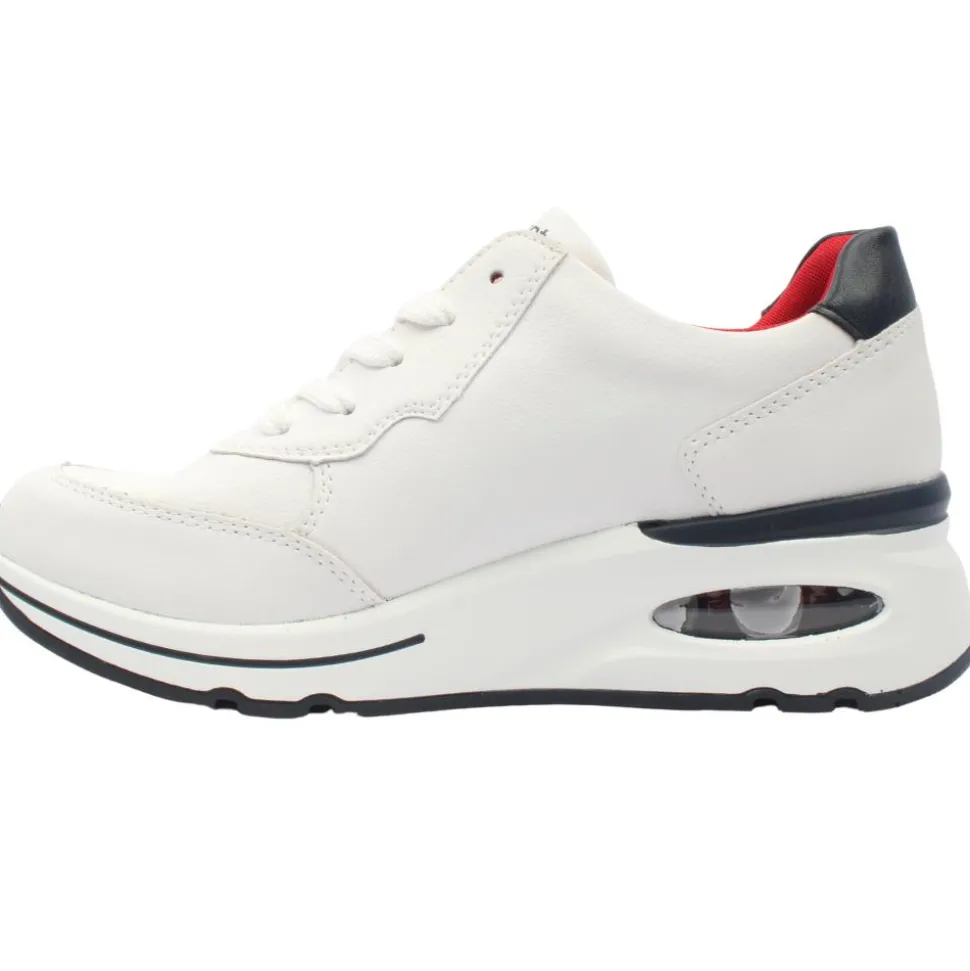 Ladies wedge traines from Remonte shoes. A subtle lift in the heel provides enhanced support and a touch of elegance, perfect for all-day wear. Designed with an innovative air-bubble sole for superior cushioning and shock absorption. These shoes are an extra wide fit for optimal comfort.