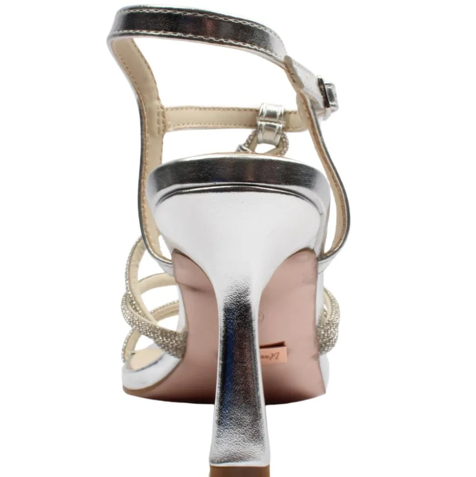 Add a touch of elegance to your evening look with the Una Healy Ladies Strappy Sandal – Dancin’ in Dark in stunning silver. Designed for both style and comfort, this sophisticated sandal features a shaped heel for a sleek silhouette and an adjustable ankle strap for a secure, custom fit.