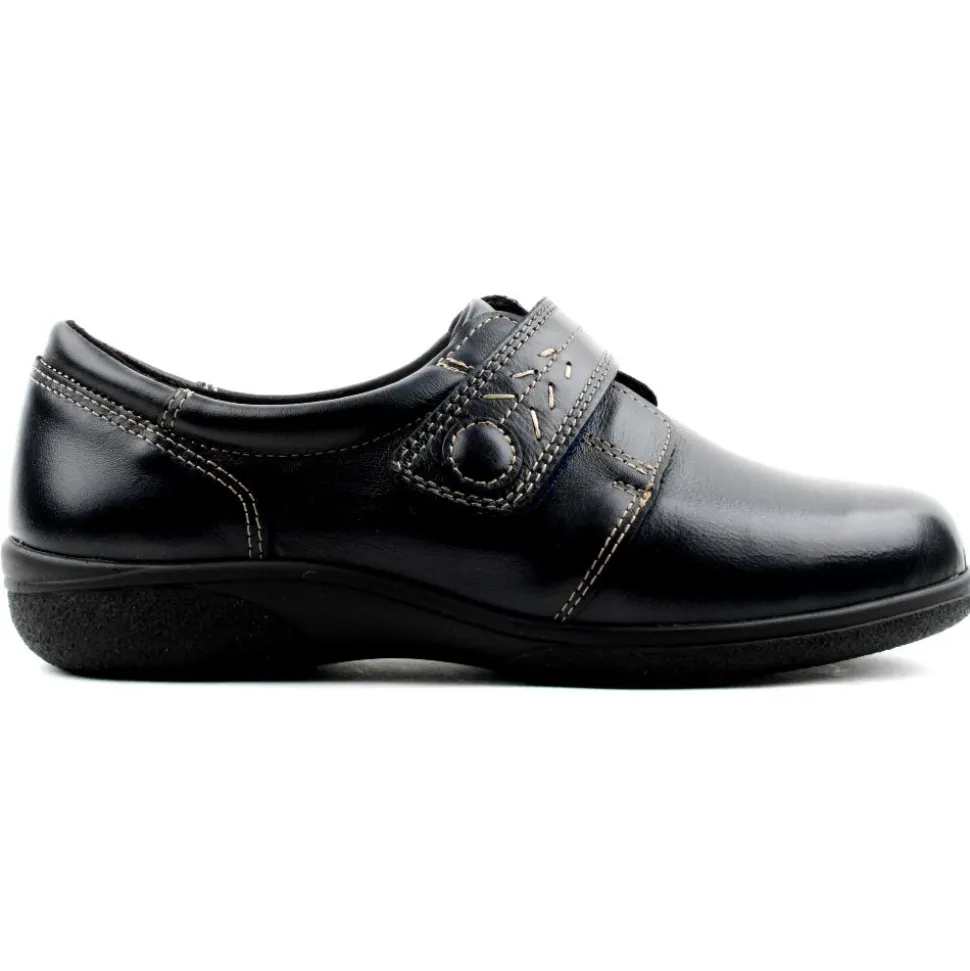 Ladies wide fitting Shoes from DB. These Ladies Shoes have single velcro straps with fold down tongues for easy on & off. They are an “2V” Fitting which fits an EE-4E Fitting Foot. They have removable cushioned insoles which makes them deeper if required.