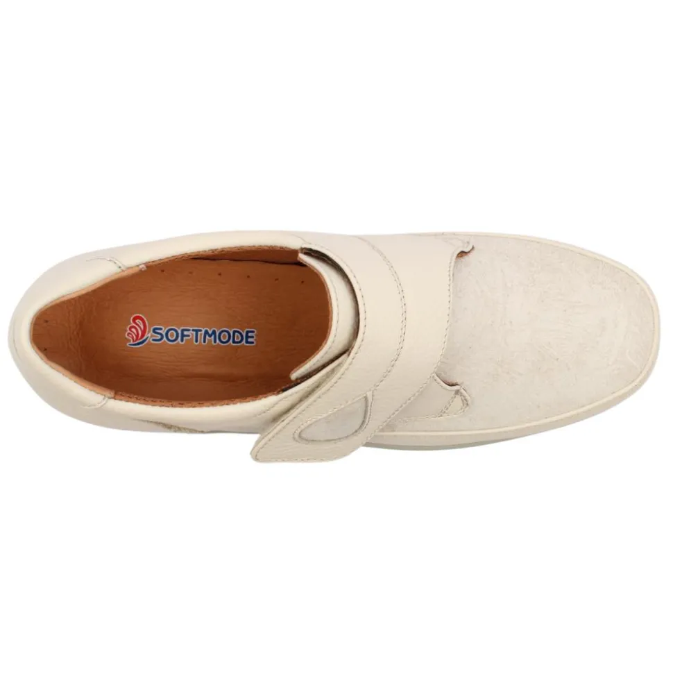 Wide fitting ladies shoes from Softmode. The upper is a combination of leather & stretch fabric. The padded insole, flexible sole & extra wide width fitting (3E) provide optimum comfort. The velcro strap allows for easy on/off. This style has a removable insole.