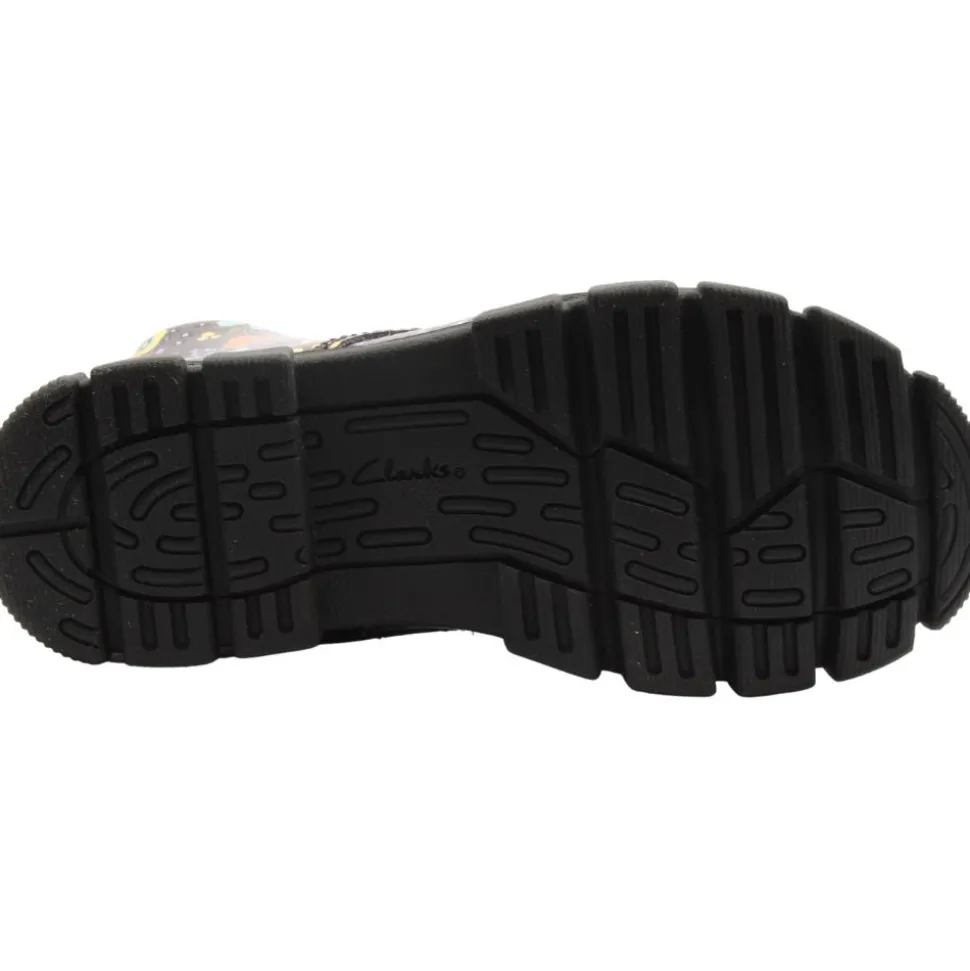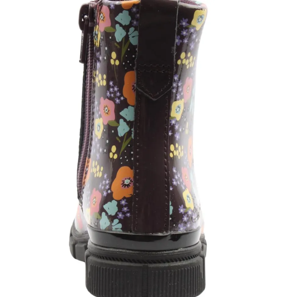 Introducing the Clarks Girls’ Biker-Style Ankle Boot, Evyn Top K. A perfect blend of style and comfort for your little one. Crafted from soft leather, these boots feature a striking multi-floral pattern on the upper for a playful yet trendy look. Designed with both zip and lace closures, they ensure easy on-and-off wear, making them as convenient as they are fashionable. The boot also includes a removable floral piece on the front, allowing for customizable style. A flexible rubber outsole provides excellent grip and comfort, while the insole is made with 50% recycled content, reflecting Clarks’ commitment to sustainability. Perfect for everyday adventures!