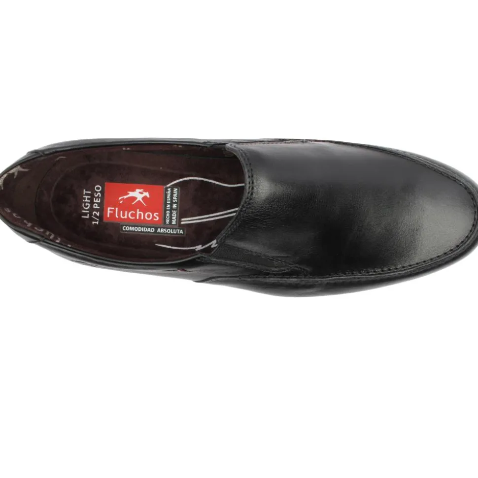 Mens Casual Shoes from Fluchos. These lightweight Shoes have a black leather upper, with shock absorbers in outsole for stability and comfort. Removable cushioned insoles which add to the comfort of the shoe. Great style for chinos or jeans.