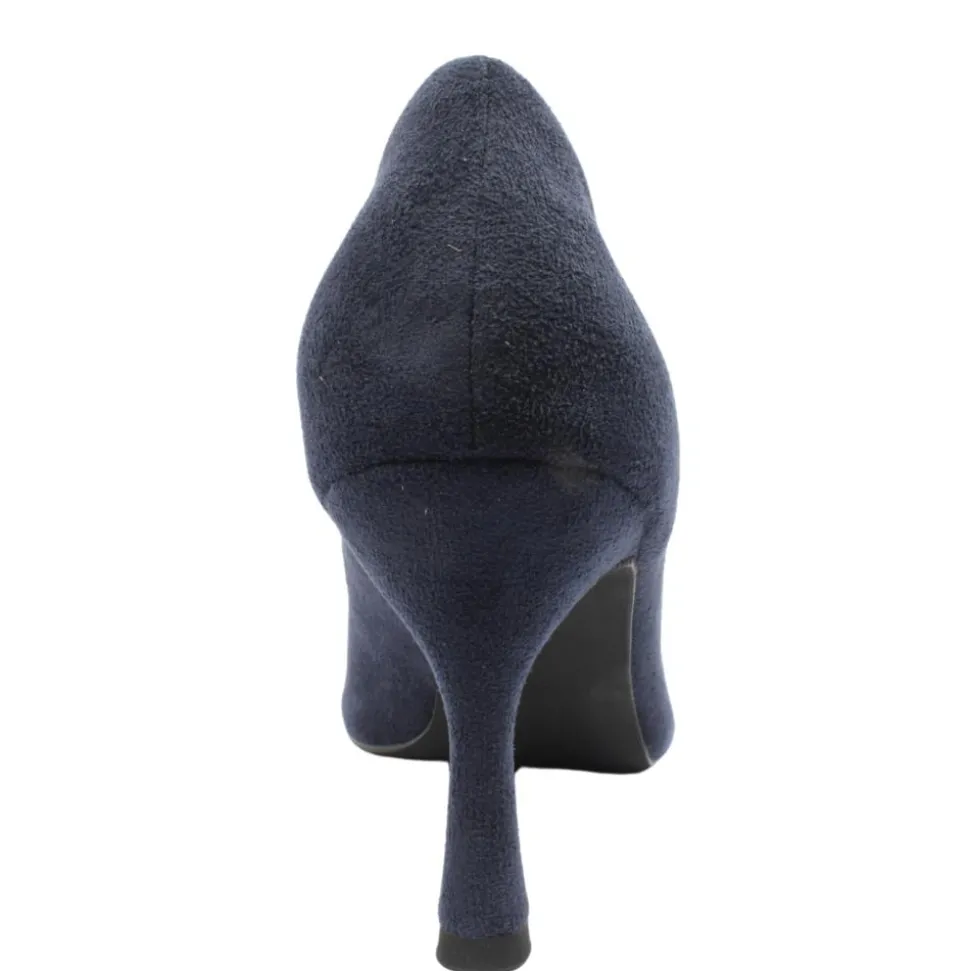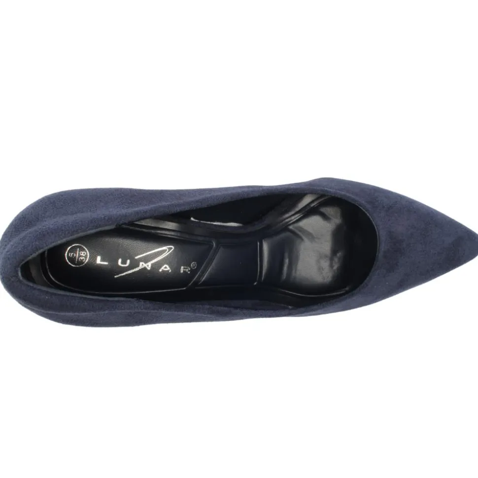 Stunning high heel court shoes from Lunar shoes. Designed in a rich navy faux suede upper, this classic court shoe brings a pop of colour to any outfit. The sleek pointed toe elongates the silhouette. The padded insole provides underfoot comfort.