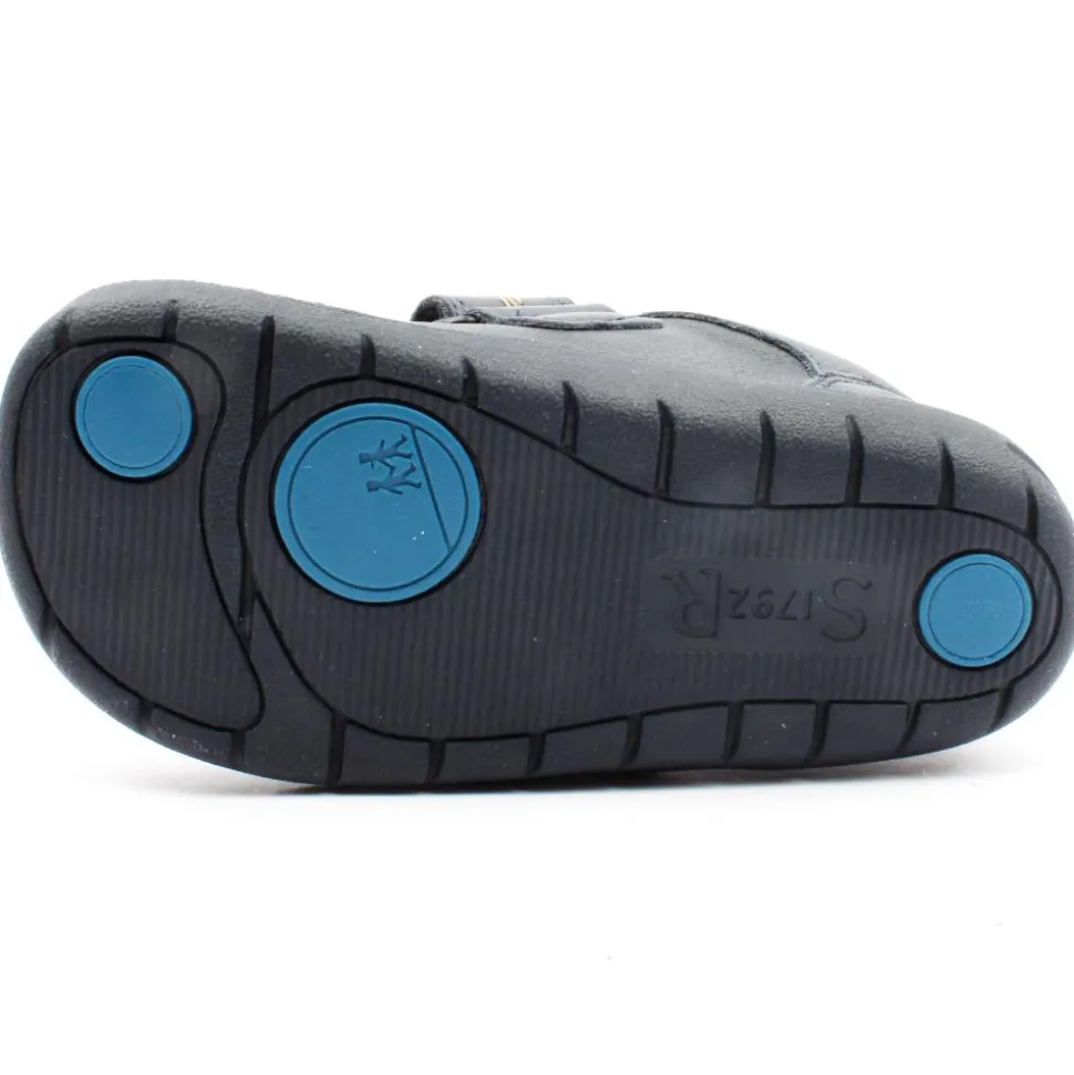 Cute boys shoe from the Startrite collection. The shoe has a soft navy upper with flexible outsoles . A chunky velcro strap allows for easy on/off while keeping the foot secure. The padded collar & leather lining will provide comfort all day.