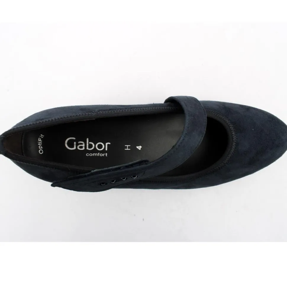 Gabor presents a stylish pair of Mary-Jane-inspired shoes featuring a low heel. Crafted with a soft navy suede leather these shoes are designed for both comfort and convenience. The diagonal velcro strap ensures easy on/off functionality. Catering to a ‘H’ wide fitting, these Gabor shoes come with a removable insole, accommodating individuals who use custom insoles. Ideal for the office or formal occasions, this style is a perfect choice for those who prefer a lower heel.