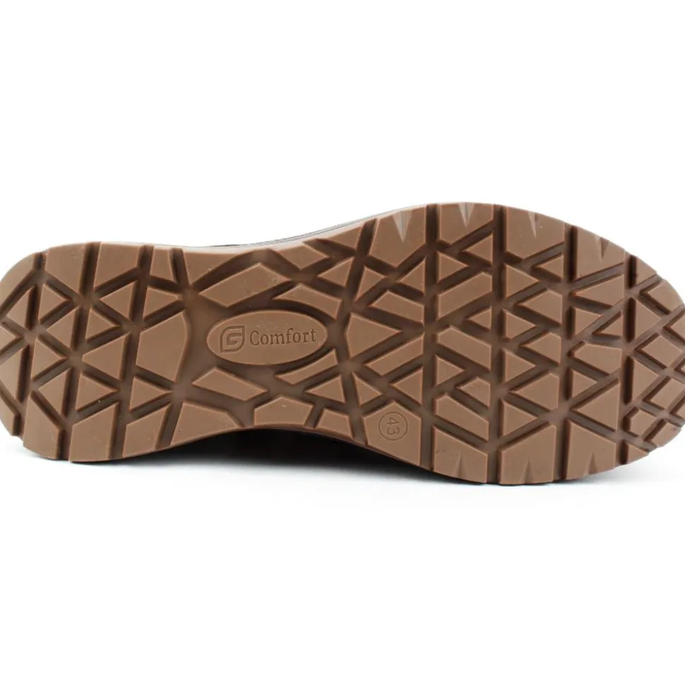 Mens walking shoes from G Comfort. These wide fitting mens shoes have soft leather uppers with Tex lining to keep feet dry and warm during wet weather. Laces & Zip for easy on & off. Removable G Fitness insoles for maximum grip, shock absorption and gentle massage of the feet. Wide Fitting & deep toe area. Flexible, Durable Outsole.