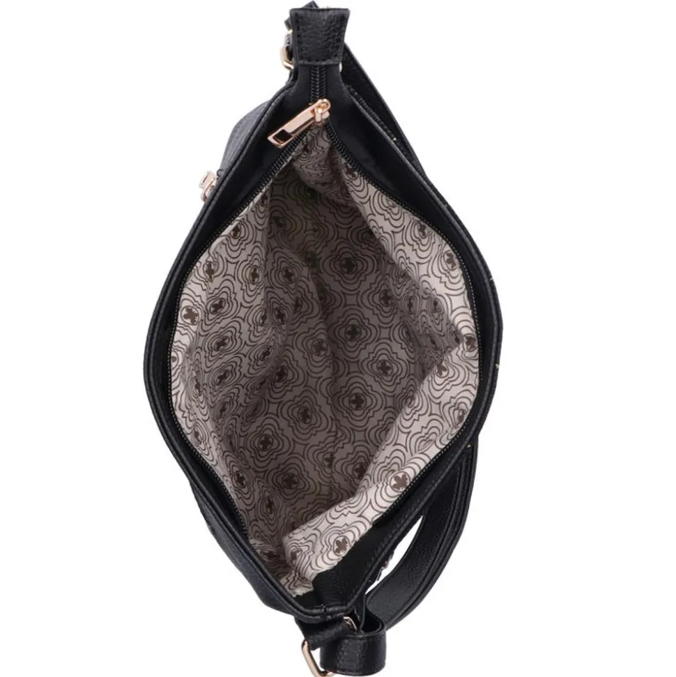 Ladies handbag from Rieker. This bag has 1 large compartments with a secure zip closure.This bag has a long shoulder strap with a detachable tassel detail. Dimensions 28cm H and 30cm W