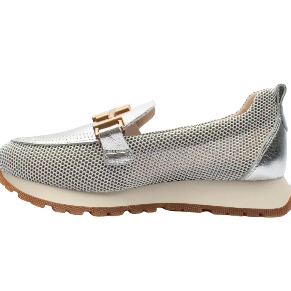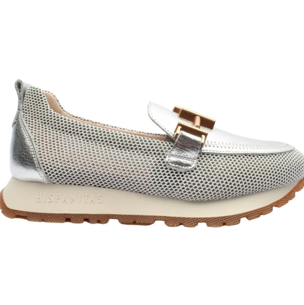These stunning Hispanitas shoes offer the perfect combination of stylish design and exceptional comfort. Crafted from a premium silver leather with mesh panelling. This style incorporates the TRIFLOW technology, which cushions each step providing flexibility and comfort in the tread, thanks to its triple cushioning. Crafted in Spain these Hispinitas Loafers for those who value both aesthetics and functionality.